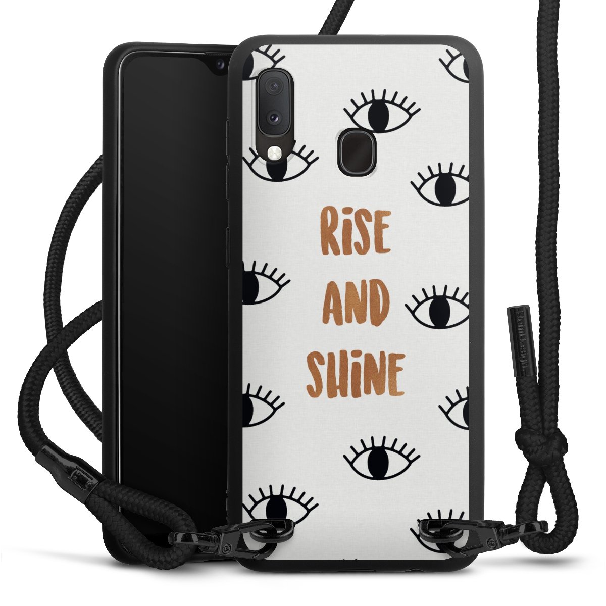 We use the solid direct print process for this phone case, which is why the print area only covers the back and the edge remains unprinted. The case to wear around your neck can be ordered unprinted, fully printed, or partially printed. For your design, either choose one of our exclusive shop motifs or get creative and create your own design, for example with photos and overlays. Design your own personal trend accessory and make an individual statement on the streets!