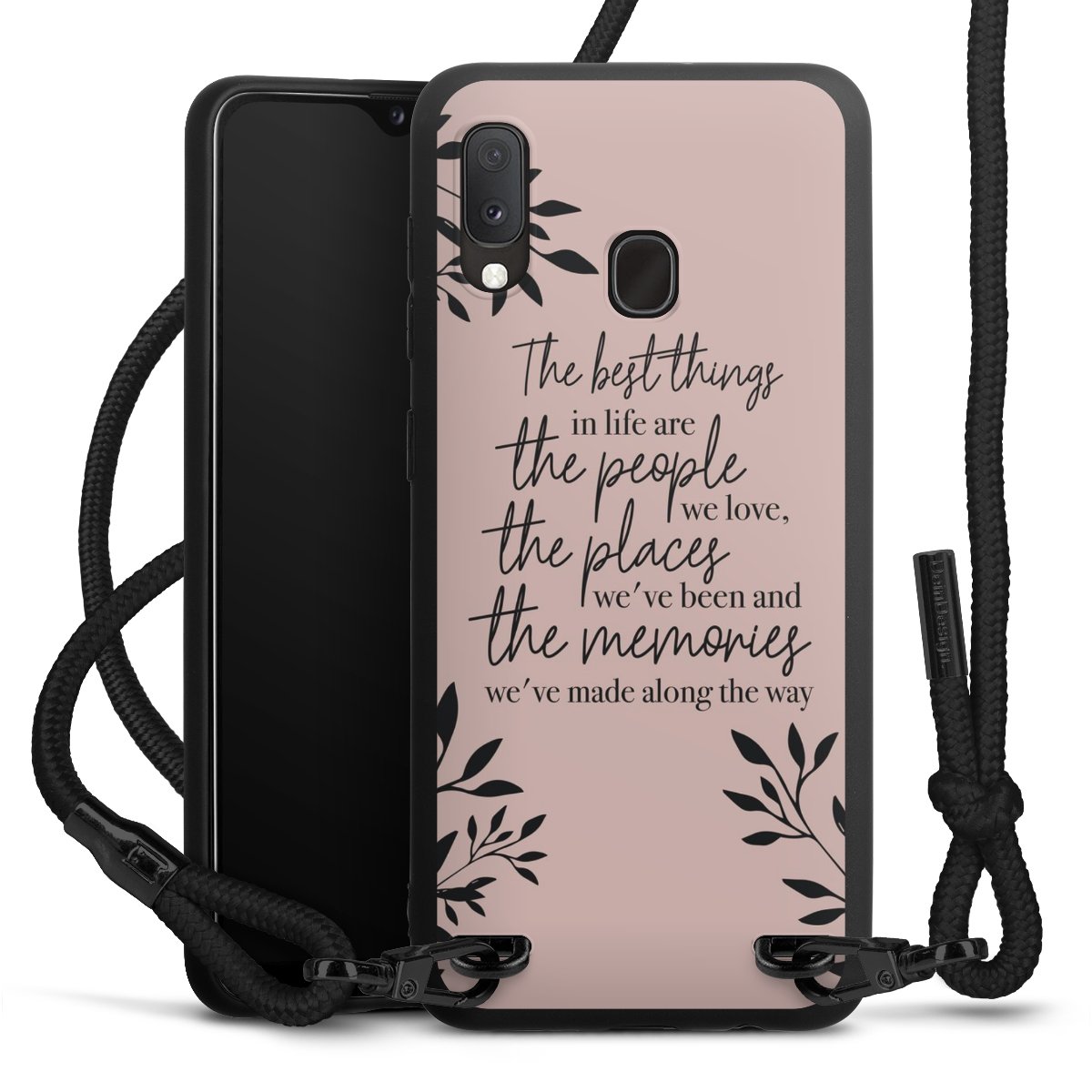 The matt black silicone case is made of flexible TPU (thermoplastic polyurethane) and offers robust protection. The durable, unbreakable material makes the cover flexible and dimensionally stable at the same time. The matte surface makes your design stand out more and is less susceptible to fingerprints and dirt. The stylish trend accessory fits comfortably in the hand and is perfectly complemented by the fabric (polyester) mobile phone strap. The braided fabric strap is approx. 1.70 metres long with a diameter of approx. 0.5 cm. Due to the special knotting technique, the length of the strap can be adjusted by simply pulling it, so that you can adapt it individually to your wishes. The practical case to wear around your neck is available with the fabric strap in black. As a little icing on the cake, we have provided the strap with a chic metal fastener in matt black. The strap is securely fastened to the case with loops made of high-quality genuine leather and press studs. The ends of the fabric strap are covered with metallic end caps and thus protected from fraying.