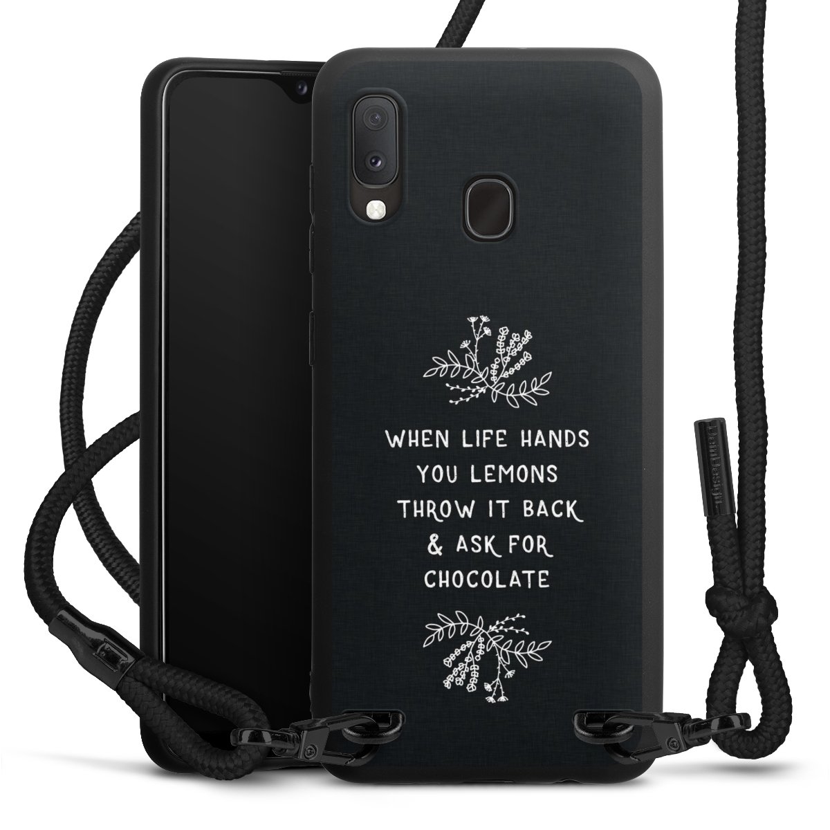 The matt black silicone case is made of flexible TPU (thermoplastic polyurethane) and offers robust protection. The durable, unbreakable material makes the cover flexible and dimensionally stable at the same time. The matte surface makes your design stand out more and is less susceptible to fingerprints and dirt. The stylish trend accessory fits comfortably in the hand and is perfectly complemented by the fabric (polyester) mobile phone strap. The braided fabric strap is approx. 1.70 metres long with a diameter of approx. 0.5 cm. Due to the special knotting technique, the length of the strap can be adjusted by simply pulling it, so that you can adapt it individually to your wishes. The practical case to wear around your neck is available with the fabric strap in black. As a little icing on the cake, we have provided the strap with a chic metal fastener in matt black. The strap is securely fastened to the case with loops made of high-quality genuine leather and press studs. The ends of the fabric strap are covered with metallic end caps and thus protected from fraying.