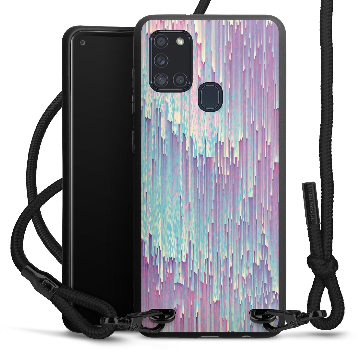 We use the solid direct print process for this phone case, which is why the print area only covers the back and the edge remains unprinted. The case to wear around your neck can be ordered unprinted, fully printed, or partially printed. For your design, either choose one of our exclusive shop motifs or get creative and create your own design, for example with photos and overlays. Design your own personal trend accessory and make an individual statement on the streets!
