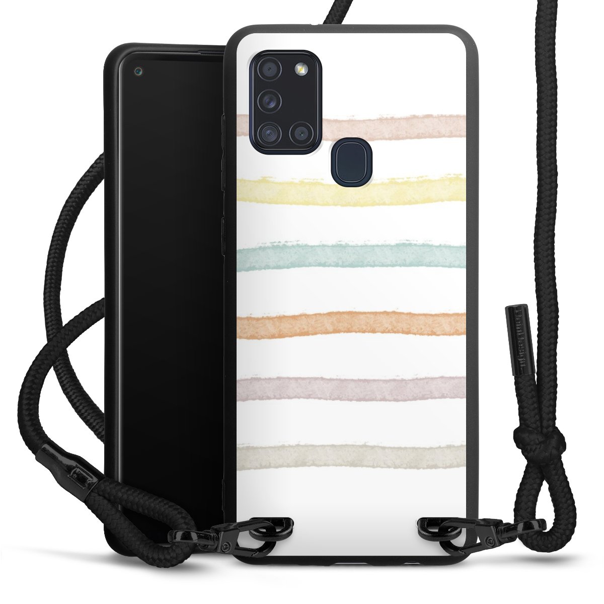 We use the solid direct print process for this phone case, which is why the print area only covers the back and the edge remains unprinted. The case to wear around your neck can be ordered unprinted, fully printed, or partially printed. For your design, either choose one of our exclusive shop motifs or get creative and create your own design, for example with photos and overlays. Design your own personal trend accessory and make an individual statement on the streets!