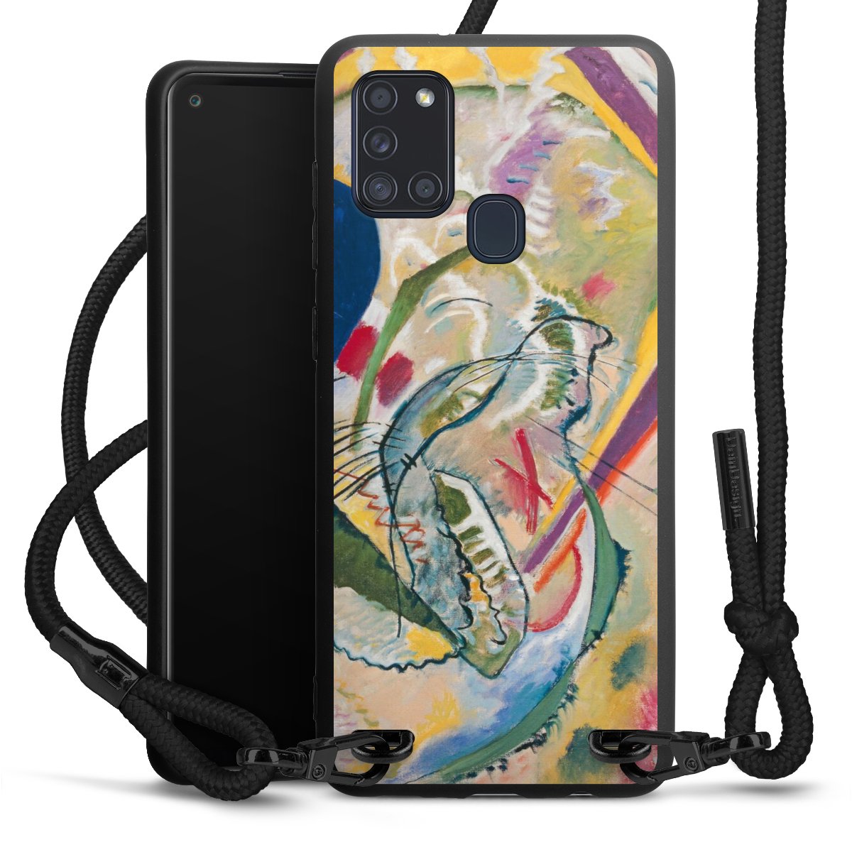 The matt black silicone case is made of flexible TPU (thermoplastic polyurethane) and offers robust protection. The durable, unbreakable material makes the cover flexible and dimensionally stable at the same time. The matte surface makes your design stand out more and is less susceptible to fingerprints and dirt. The stylish trend accessory fits comfortably in the hand and is perfectly complemented by the fabric (polyester) mobile phone strap. The braided fabric strap is approx. 1.70 metres long with a diameter of approx. 0.5 cm. Due to the special knotting technique, the length of the strap can be adjusted by simply pulling it, so that you can adapt it individually to your wishes. The practical case to wear around your neck is available with the fabric strap in black. As a little icing on the cake, we have provided the strap with a chic metal fastener in matt black. The strap is securely fastened to the case with loops made of high-quality genuine leather and press studs. The ends of the fabric strap are covered with metallic end caps and thus protected from fraying.