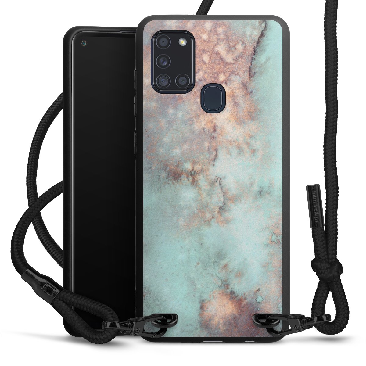 We use the solid direct print process for this phone case, which is why the print area only covers the back and the edge remains unprinted. The case to wear around your neck can be ordered unprinted, fully printed, or partially printed. For your design, either choose one of our exclusive shop motifs or get creative and create your own design, for example with photos and overlays. Design your own personal trend accessory and make an individual statement on the streets!
