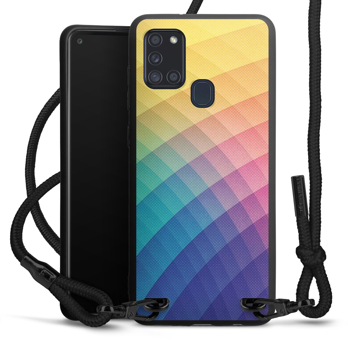 We use the solid direct print process for this phone case, which is why the print area only covers the back and the edge remains unprinted. The case to wear around your neck can be ordered unprinted, fully printed, or partially printed. For your design, either choose one of our exclusive shop motifs or get creative and create your own design, for example with photos and overlays. Design your own personal trend accessory and make an individual statement on the streets!