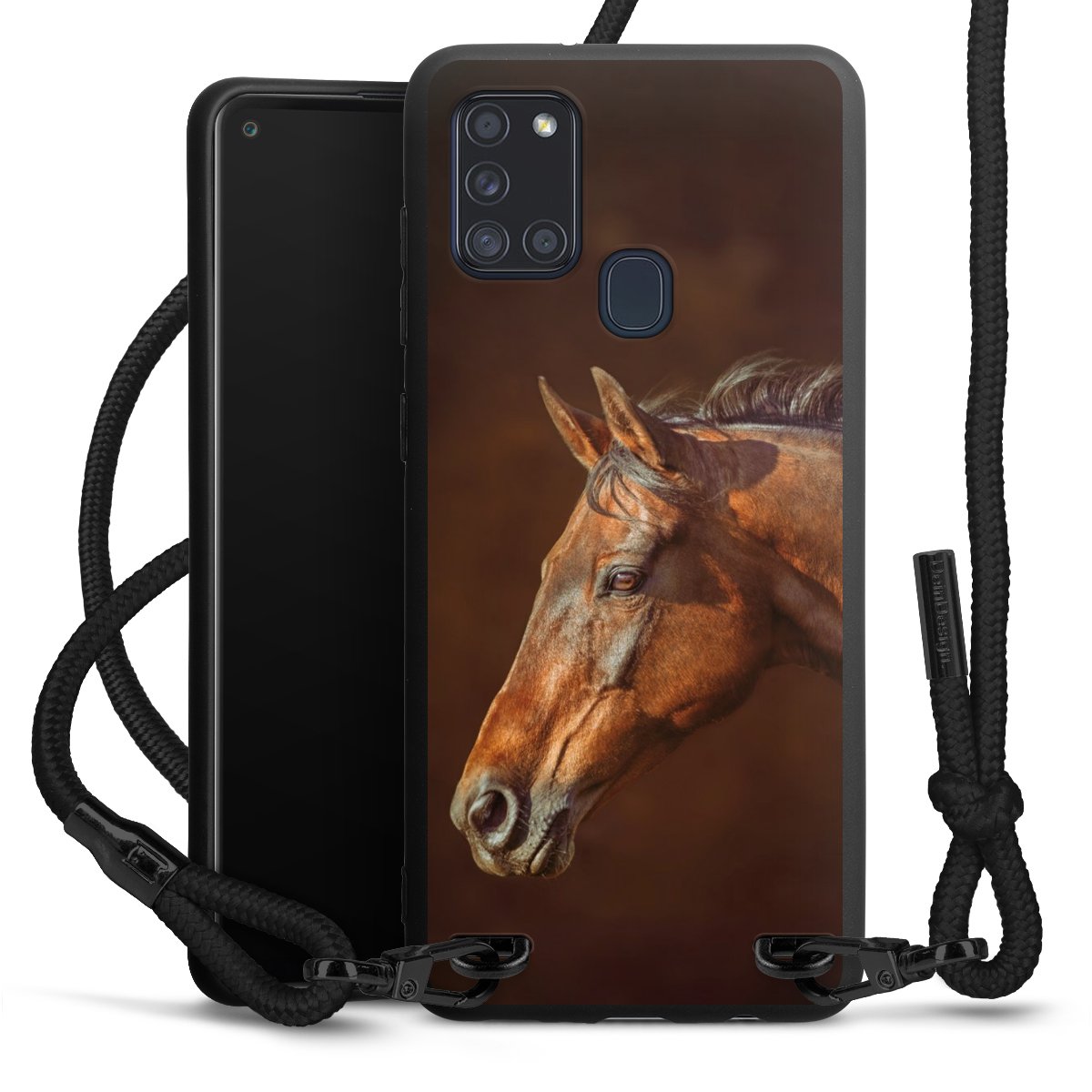 The matt black silicone case is made of flexible TPU (thermoplastic polyurethane) and offers robust protection. The durable, unbreakable material makes the cover flexible and dimensionally stable at the same time. The matte surface makes your design stand out more and is less susceptible to fingerprints and dirt. The stylish trend accessory fits comfortably in the hand and is perfectly complemented by the fabric (polyester) mobile phone strap. The braided fabric strap is approx. 1.70 metres long with a diameter of approx. 0.5 cm. Due to the special knotting technique, the length of the strap can be adjusted by simply pulling it, so that you can adapt it individually to your wishes. The practical case to wear around your neck is available with the fabric strap in black. As a little icing on the cake, we have provided the strap with a chic metal fastener in matt black. The strap is securely fastened to the case with loops made of high-quality genuine leather and press studs. The ends of the fabric strap are covered with metallic end caps and thus protected from fraying.