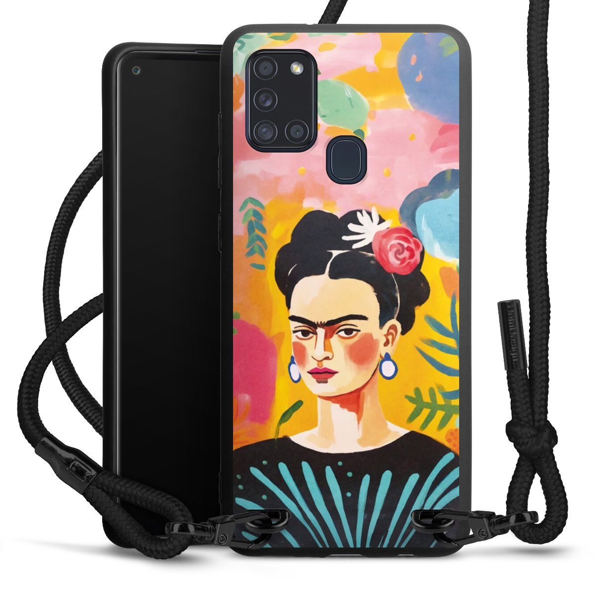 The matt black silicone case is made of flexible TPU (thermoplastic polyurethane) and offers robust protection. The durable, unbreakable material makes the cover flexible and dimensionally stable at the same time. The matte surface makes your design stand out more and is less susceptible to fingerprints and dirt. The stylish trend accessory fits comfortably in the hand and is perfectly complemented by the fabric (polyester) mobile phone strap. The braided fabric strap is approx. 1.70 metres long with a diameter of approx. 0.5 cm. Due to the special knotting technique, the length of the strap can be adjusted by simply pulling it, so that you can adapt it individually to your wishes. The practical case to wear around your neck is available with the fabric strap in black. As a little icing on the cake, we have provided the strap with a chic metal fastener in matt black. The strap is securely fastened to the case with loops made of high-quality genuine leather and press studs. The ends of the fabric strap are covered with metallic end caps and thus protected from fraying.