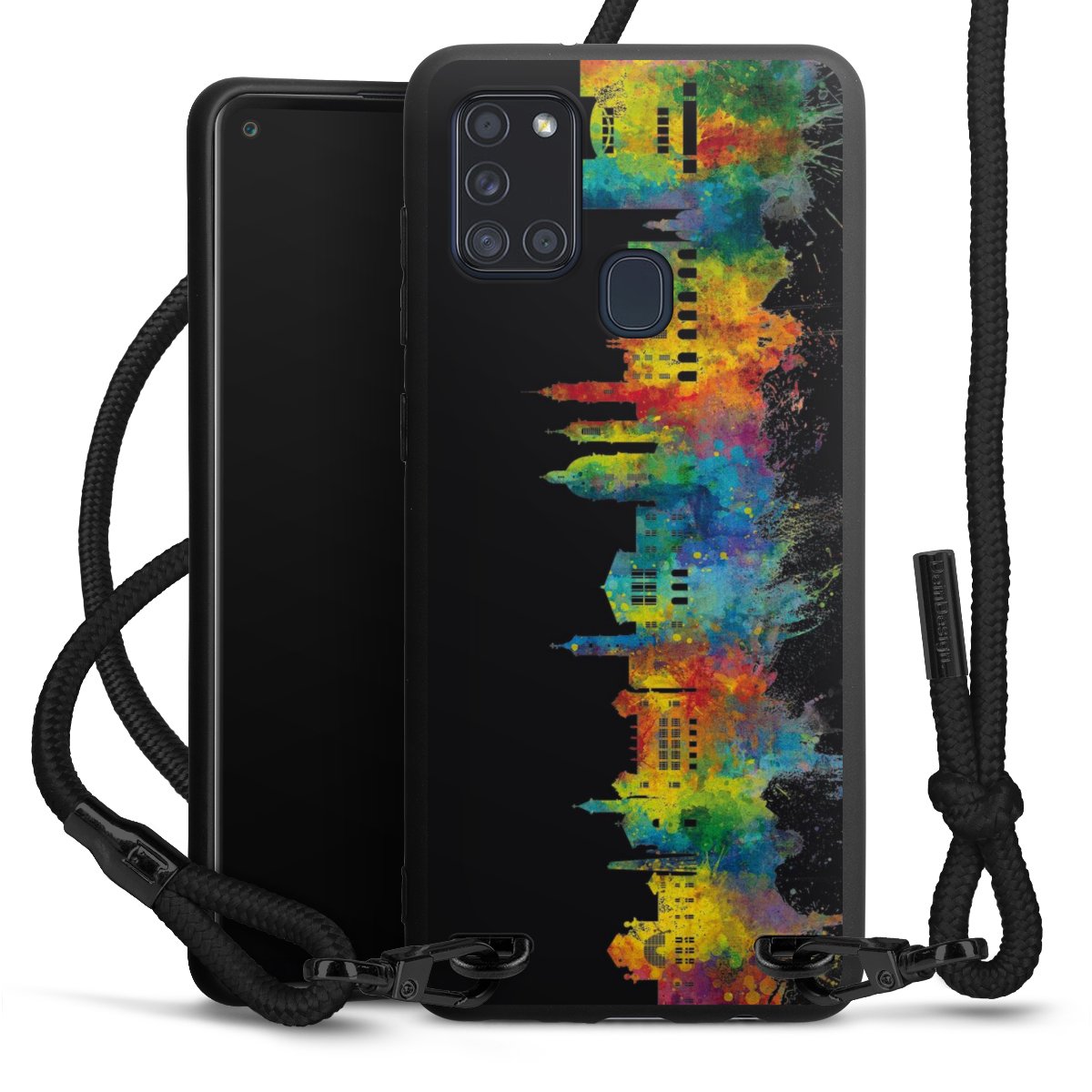 We use the solid direct print process for this phone case, which is why the print area only covers the back and the edge remains unprinted. The case to wear around your neck can be ordered unprinted, fully printed, or partially printed. For your design, either choose one of our exclusive shop motifs or get creative and create your own design, for example with photos and overlays. Design your own personal trend accessory and make an individual statement on the streets!