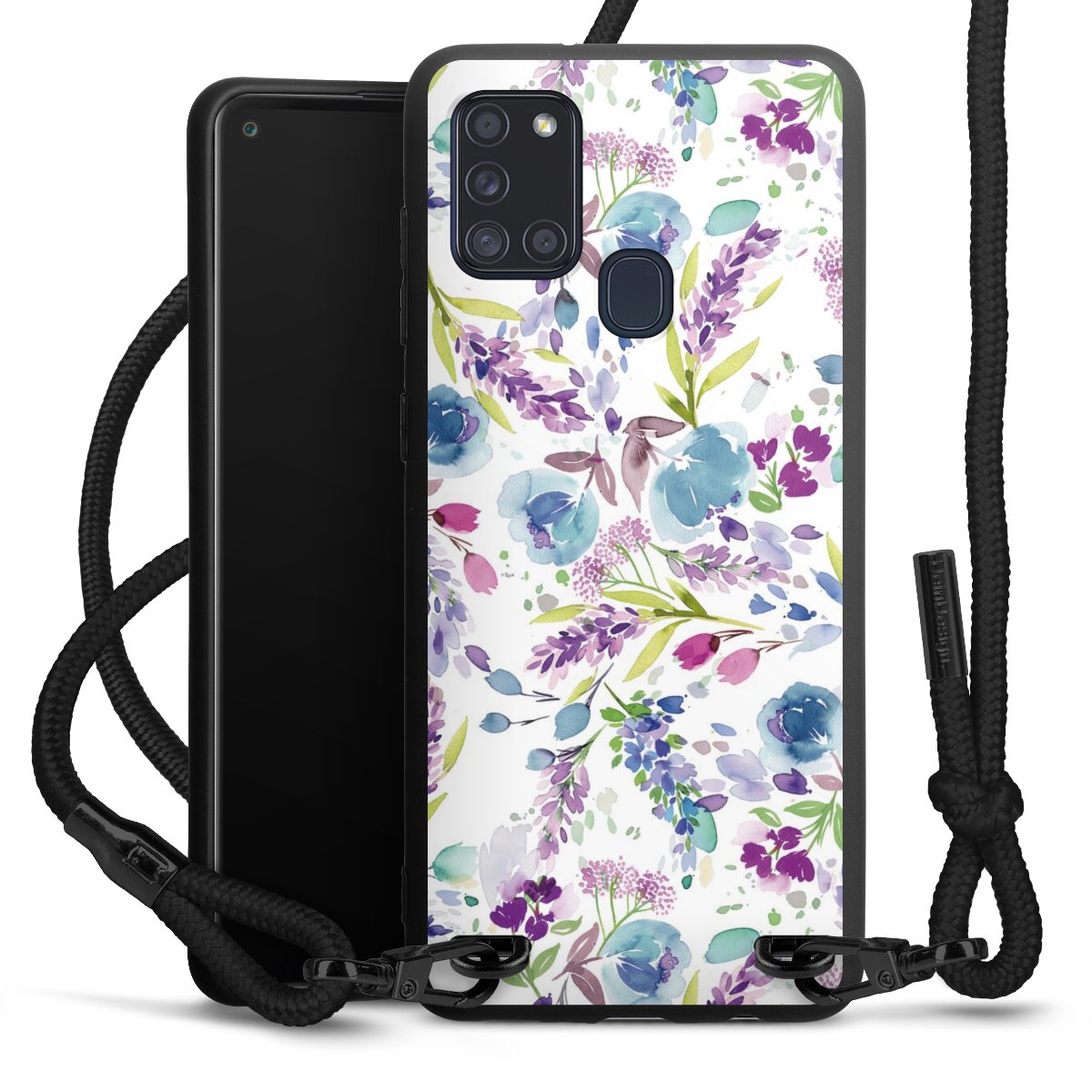 We use the solid direct print process for this phone case, which is why the print area only covers the back and the edge remains unprinted. The case to wear around your neck can be ordered unprinted, fully printed, or partially printed. For your design, either choose one of our exclusive shop motifs or get creative and create your own design, for example with photos and overlays. Design your own personal trend accessory and make an individual statement on the streets!