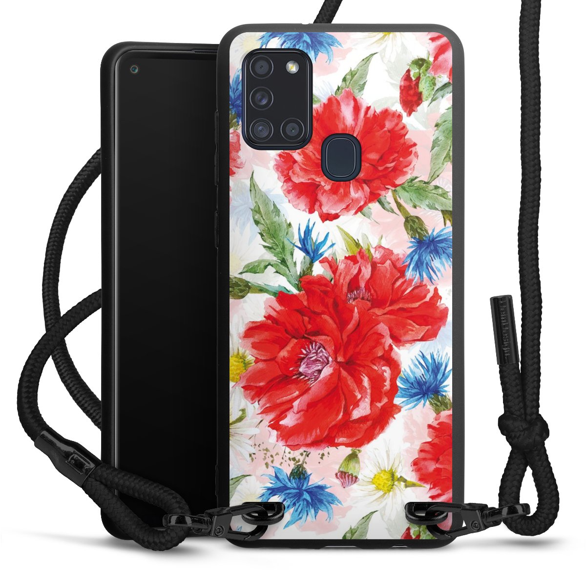 The matt black silicone case is made of flexible TPU (thermoplastic polyurethane) and offers robust protection. The durable, unbreakable material makes the cover flexible and dimensionally stable at the same time. The matte surface makes your design stand out more and is less susceptible to fingerprints and dirt. The stylish trend accessory fits comfortably in the hand and is perfectly complemented by the fabric (polyester) mobile phone strap. The braided fabric strap is approx. 1.70 metres long with a diameter of approx. 0.5 cm. Due to the special knotting technique, the length of the strap can be adjusted by simply pulling it, so that you can adapt it individually to your wishes. The practical case to wear around your neck is available with the fabric strap in black. As a little icing on the cake, we have provided the strap with a chic metal fastener in matt black. The strap is securely fastened to the case with loops made of high-quality genuine leather and press studs. The ends of the fabric strap are covered with metallic end caps and thus protected from fraying.