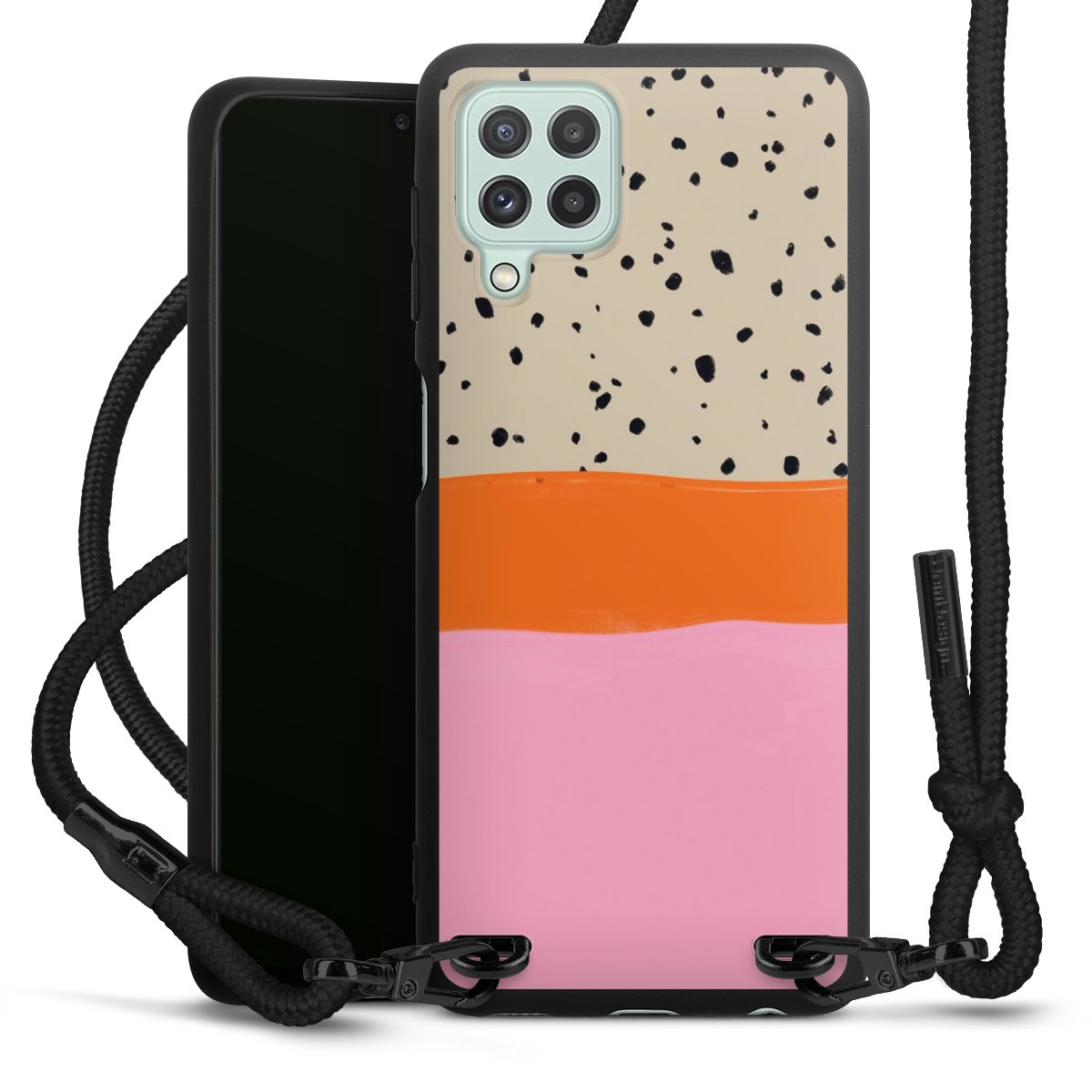 We use the solid direct print process for this phone case, which is why the print area only covers the back and the edge remains unprinted. The case to wear around your neck can be ordered unprinted, fully printed, or partially printed. For your design, either choose one of our exclusive shop motifs or get creative and create your own design, for example with photos and overlays. Design your own personal trend accessory and make an individual statement on the streets!