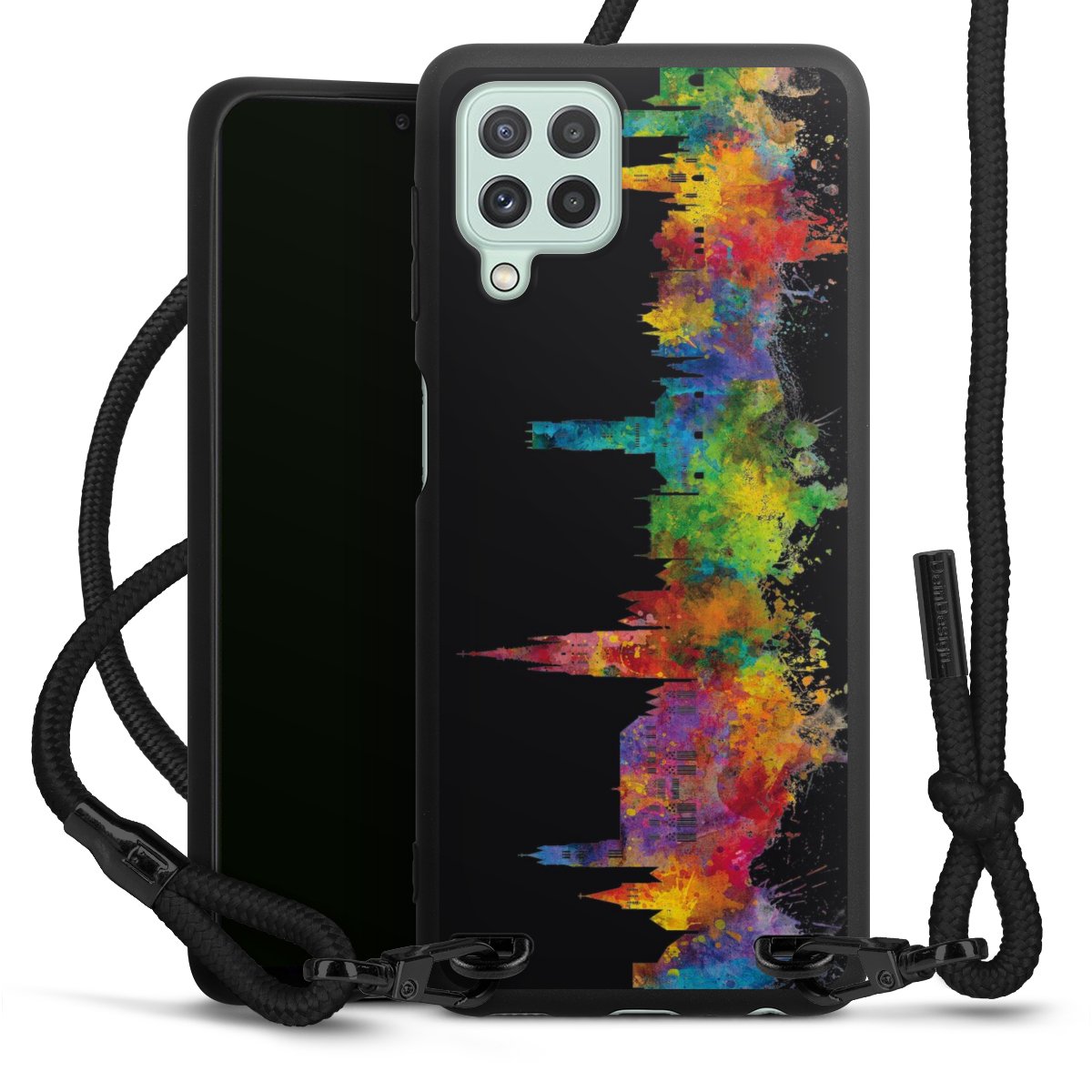 We use the solid direct print process for this phone case, which is why the print area only covers the back and the edge remains unprinted. The case to wear around your neck can be ordered unprinted, fully printed, or partially printed. For your design, either choose one of our exclusive shop motifs or get creative and create your own design, for example with photos and overlays. Design your own personal trend accessory and make an individual statement on the streets!