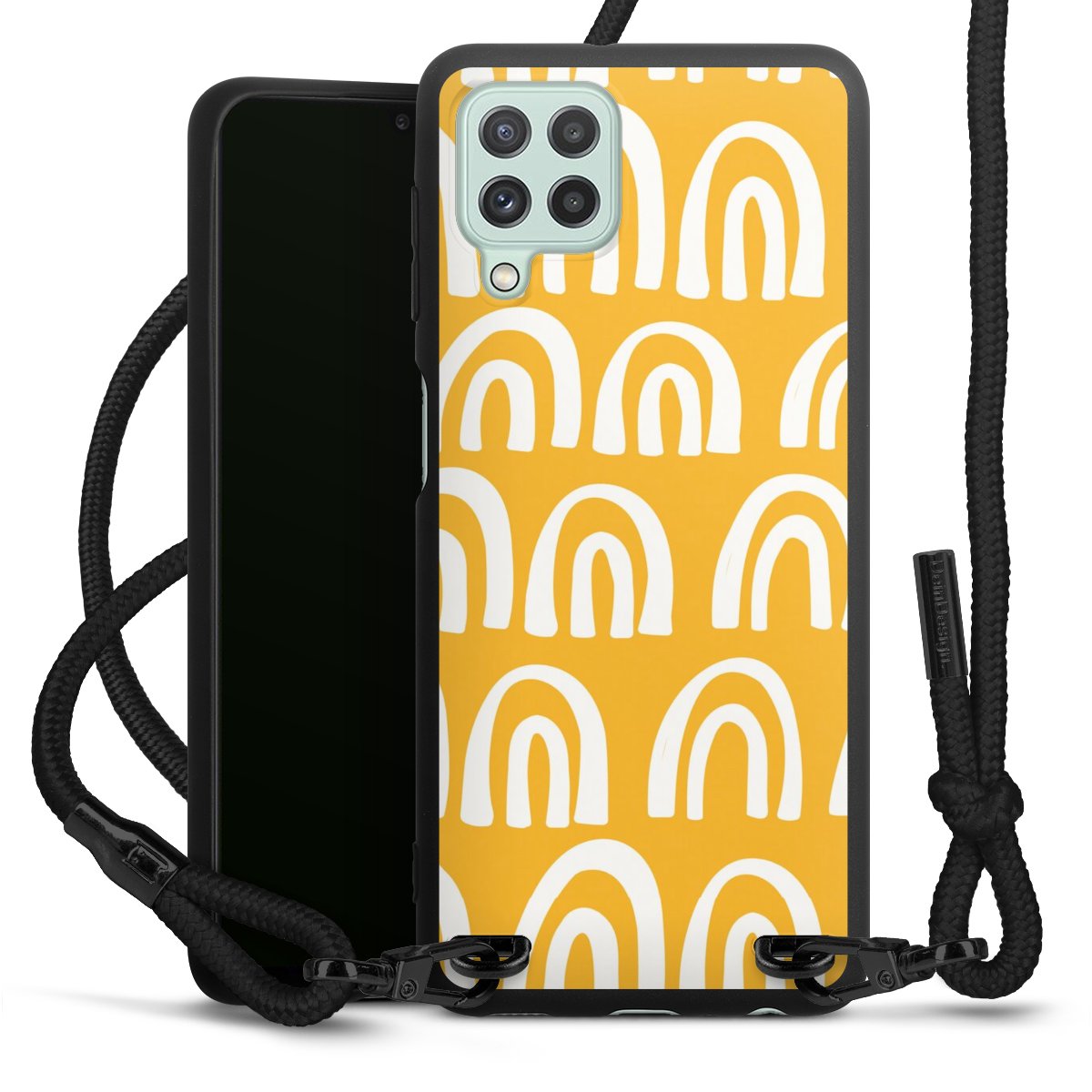 We use the solid direct print process for this phone case, which is why the print area only covers the back and the edge remains unprinted. The case to wear around your neck can be ordered unprinted, fully printed, or partially printed. For your design, either choose one of our exclusive shop motifs or get creative and create your own design, for example with photos and overlays. Design your own personal trend accessory and make an individual statement on the streets!
