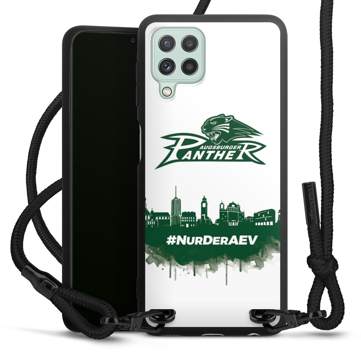 We use the solid direct print process for this phone case, which is why the print area only covers the back and the edge remains unprinted. The case to wear around your neck can be ordered unprinted, fully printed, or partially printed. For your design, either choose one of our exclusive shop motifs or get creative and create your own design, for example with photos and overlays. Design your own personal trend accessory and make an individual statement on the streets!