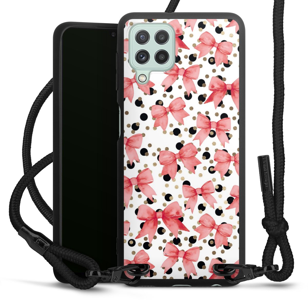 The matt black silicone case is made of flexible TPU (thermoplastic polyurethane) and offers robust protection. The durable, unbreakable material makes the cover flexible and dimensionally stable at the same time. The matte surface makes your design stand out more and is less susceptible to fingerprints and dirt. The stylish trend accessory fits comfortably in the hand and is perfectly complemented by the fabric (polyester) mobile phone strap. The braided fabric strap is approx. 1.70 metres long with a diameter of approx. 0.5 cm. Due to the special knotting technique, the length of the strap can be adjusted by simply pulling it, so that you can adapt it individually to your wishes. The practical case to wear around your neck is available with the fabric strap in black. As a little icing on the cake, we have provided the strap with a chic metal fastener in matt black. The strap is securely fastened to the case with loops made of high-quality genuine leather and press studs. The ends of the fabric strap are covered with metallic end caps and thus protected from fraying.