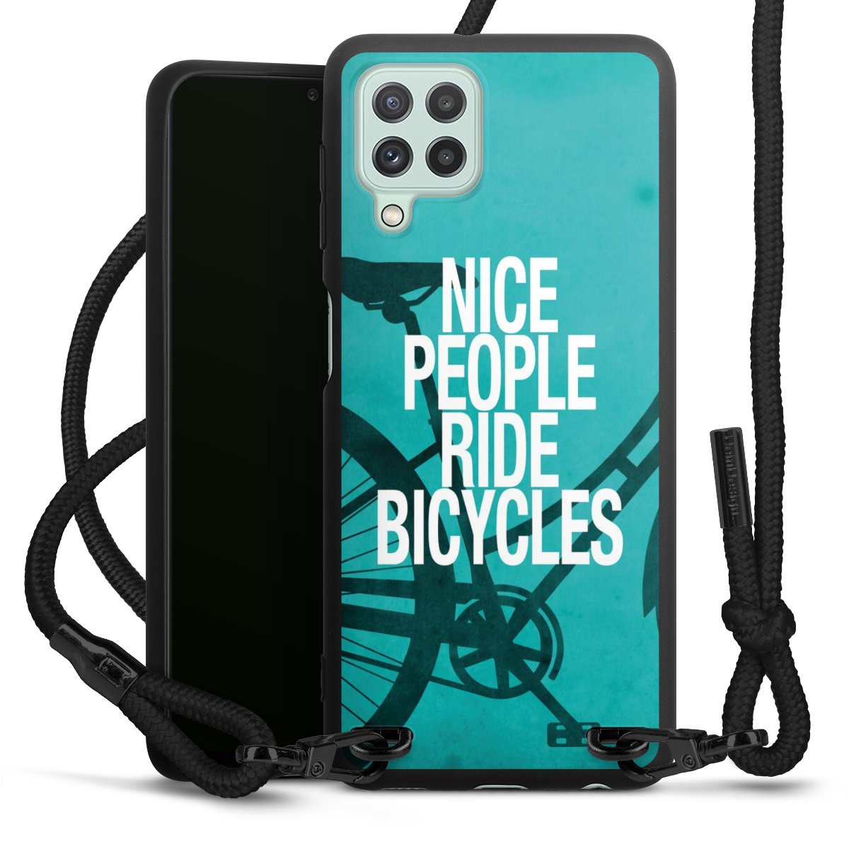 We use the solid direct print process for this phone case, which is why the print area only covers the back and the edge remains unprinted. The case to wear around your neck can be ordered unprinted, fully printed, or partially printed. For your design, either choose one of our exclusive shop motifs or get creative and create your own design, for example with photos and overlays. Design your own personal trend accessory and make an individual statement on the streets!