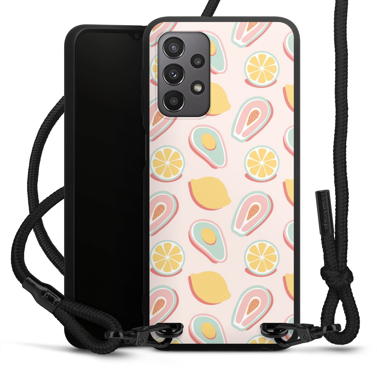 We use the solid direct print process for this phone case, which is why the print area only covers the back and the edge remains unprinted. The case to wear around your neck can be ordered unprinted, fully printed, or partially printed. For your design, either choose one of our exclusive shop motifs or get creative and create your own design, for example with photos and overlays. Design your own personal trend accessory and make an individual statement on the streets!