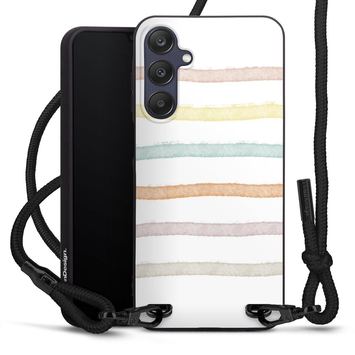 We use the solid direct print process for this phone case, which is why the print area only covers the back and the edge remains unprinted. The case to wear around your neck can be ordered unprinted, fully printed, or partially printed. For your design, either choose one of our exclusive shop motifs or get creative and create your own design, for example with photos and overlays. Design your own personal trend accessory and make an individual statement on the streets!