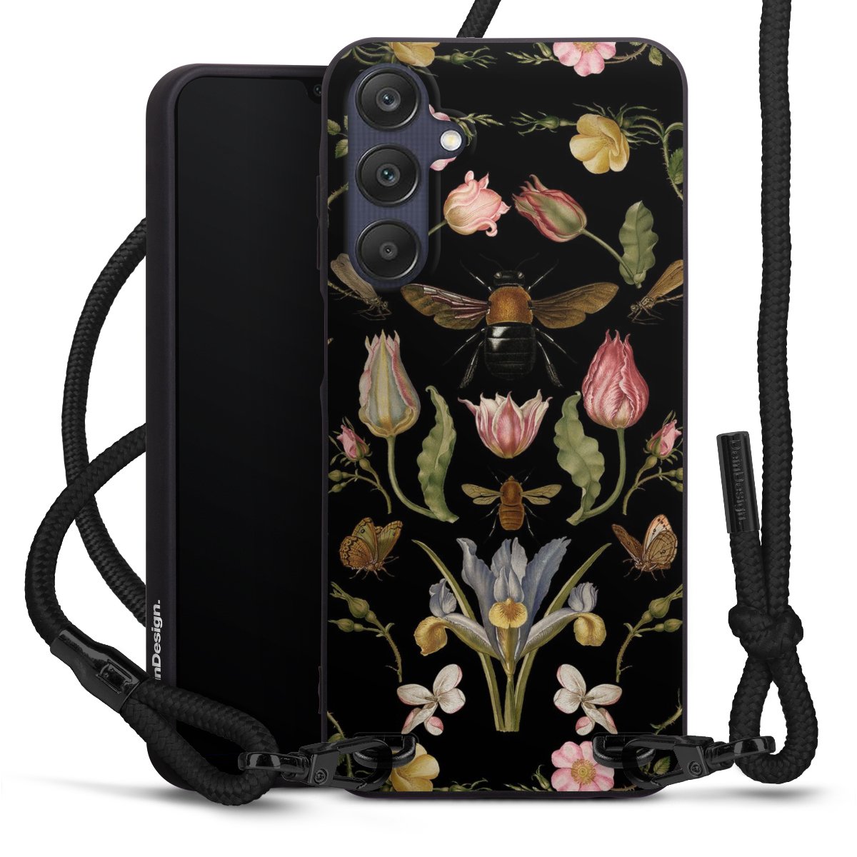 Pure Black: Phone case, fabric strap and metal details in stylish matt black.