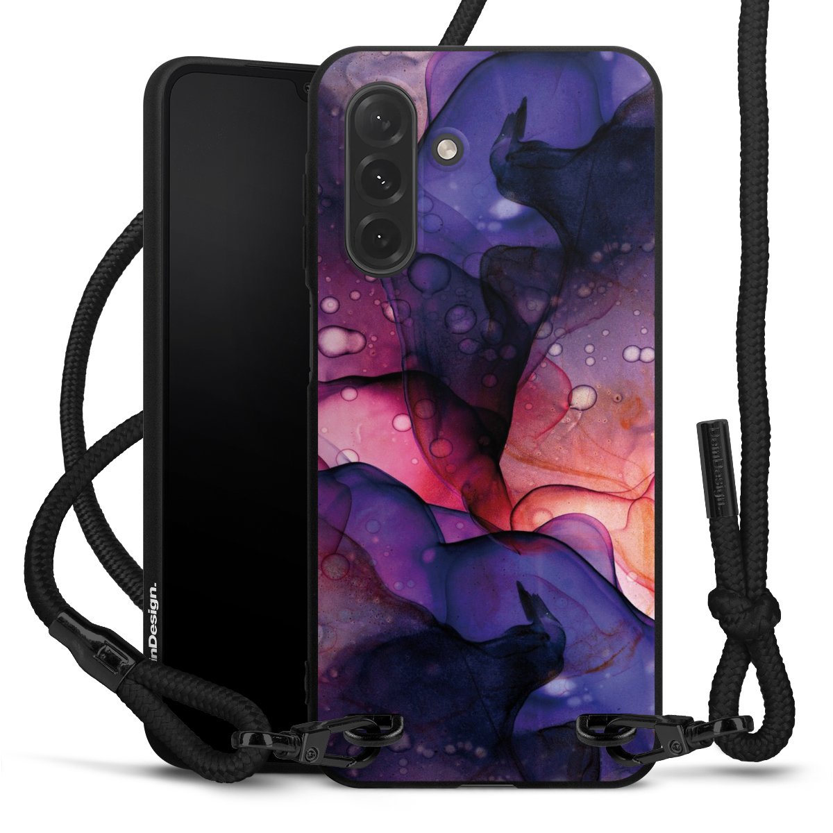 We use the solid direct print process for this phone case, which is why the print area only covers the back and the edge remains unprinted. The case to wear around your neck can be ordered unprinted, fully printed, or partially printed. For your design, either choose one of our exclusive shop motifs or get creative and create your own design, for example with photos and overlays. Design your own personal trend accessory and make an individual statement on the streets!