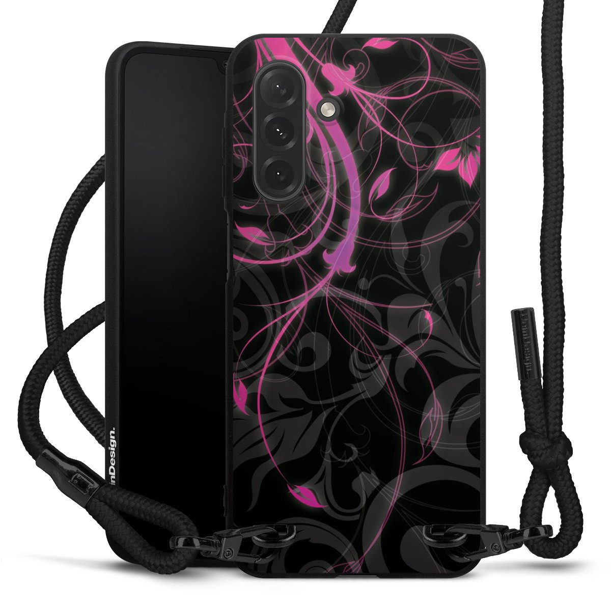 The matt black silicone case is made of flexible TPU (thermoplastic polyurethane) and offers robust protection. The durable, unbreakable material makes the cover flexible and dimensionally stable at the same time. The matte surface makes your design stand out more and is less susceptible to fingerprints and dirt. The stylish trend accessory fits comfortably in the hand and is perfectly complemented by the fabric (polyester) mobile phone strap. The braided fabric strap is approx. 1.70 metres long with a diameter of approx. 0.5 cm. Due to the special knotting technique, the length of the strap can be adjusted by simply pulling it, so that you can adapt it individually to your wishes. The practical case to wear around your neck is available with the fabric strap in black. As a little icing on the cake, we have provided the strap with a chic metal fastener in matt black. The strap is securely fastened to the case with loops made of high-quality genuine leather and press studs. The ends of the fabric strap are covered with metallic end caps and thus protected from fraying.