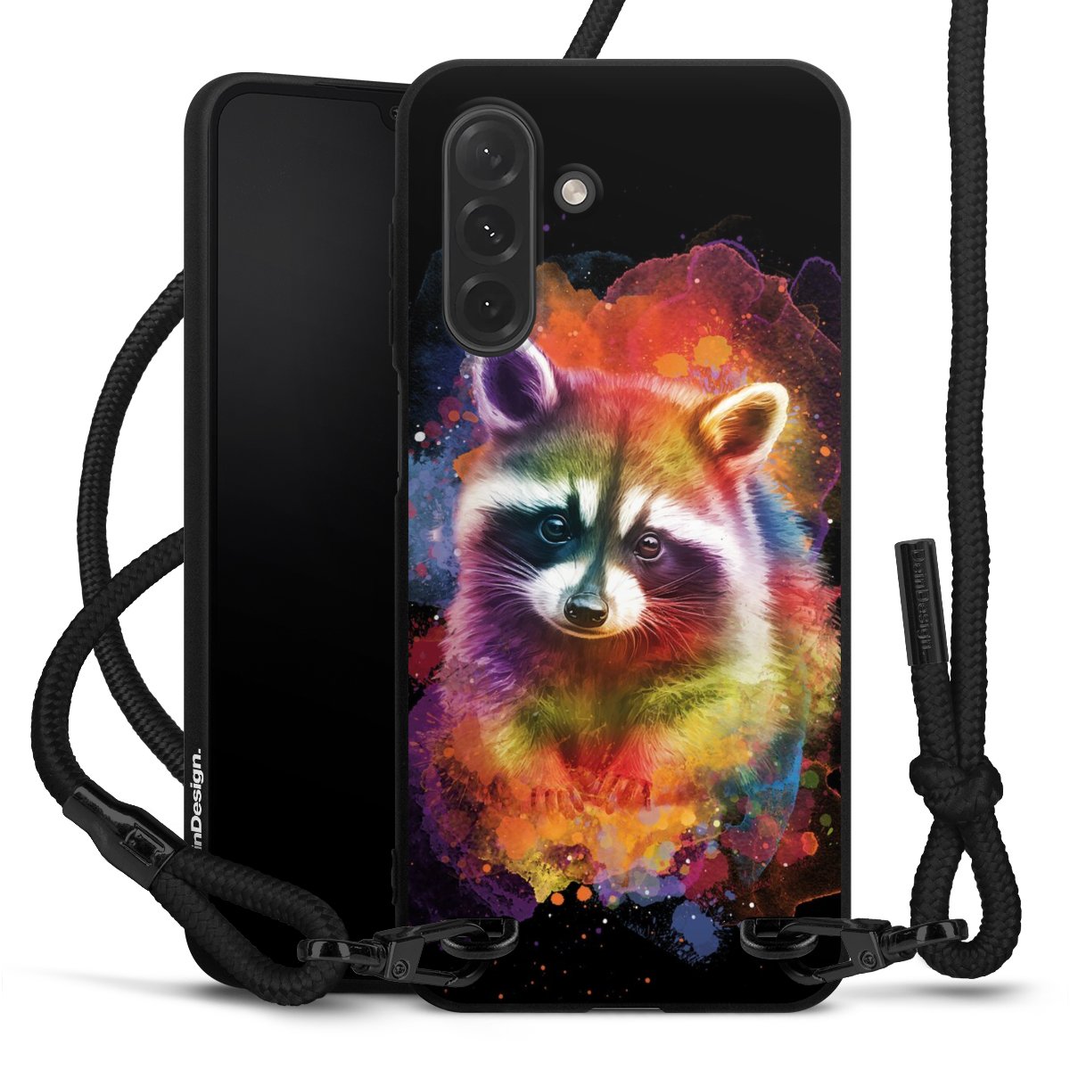 The matt black silicone case is made of flexible TPU (thermoplastic polyurethane) and offers robust protection. The durable, unbreakable material makes the cover flexible and dimensionally stable at the same time. The matte surface makes your design stand out more and is less susceptible to fingerprints and dirt. The stylish trend accessory fits comfortably in the hand and is perfectly complemented by the fabric (polyester) mobile phone strap. The braided fabric strap is approx. 1.70 metres long with a diameter of approx. 0.5 cm. Due to the special knotting technique, the length of the strap can be adjusted by simply pulling it, so that you can adapt it individually to your wishes. The practical case to wear around your neck is available with the fabric strap in black. As a little icing on the cake, we have provided the strap with a chic metal fastener in matt black. The strap is securely fastened to the case with loops made of high-quality genuine leather and press studs. The ends of the fabric strap are covered with metallic end caps and thus protected from fraying.
