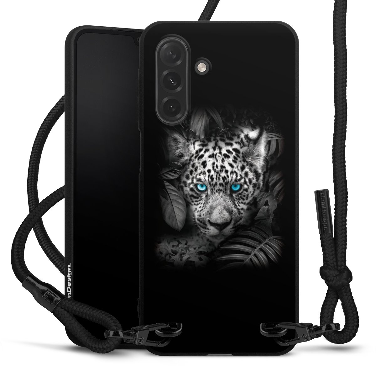 The matt black silicone case is made of flexible TPU (thermoplastic polyurethane) and offers robust protection. The durable, unbreakable material makes the cover flexible and dimensionally stable at the same time. The matte surface makes your design stand out more and is less susceptible to fingerprints and dirt. The stylish trend accessory fits comfortably in the hand and is perfectly complemented by the fabric (polyester) mobile phone strap. The braided fabric strap is approx. 1.70 metres long with a diameter of approx. 0.5 cm. Due to the special knotting technique, the length of the strap can be adjusted by simply pulling it, so that you can adapt it individually to your wishes. The practical case to wear around your neck is available with the fabric strap in black. As a little icing on the cake, we have provided the strap with a chic metal fastener in matt black. The strap is securely fastened to the case with loops made of high-quality genuine leather and press studs. The ends of the fabric strap are covered with metallic end caps and thus protected from fraying.