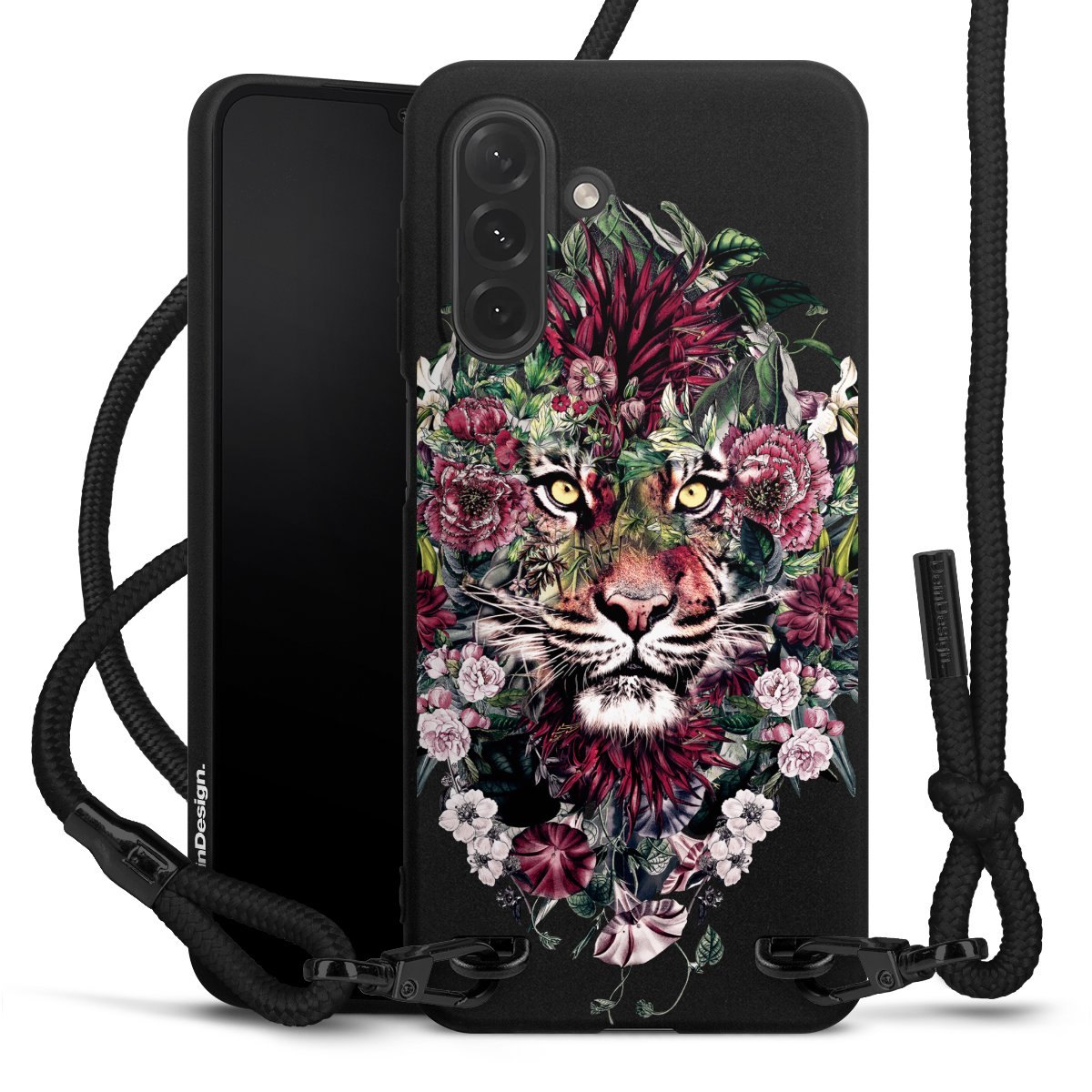 The matt black silicone case is made of flexible TPU (thermoplastic polyurethane) and offers robust protection. The durable, unbreakable material makes the cover flexible and dimensionally stable at the same time. The matte surface makes your design stand out more and is less susceptible to fingerprints and dirt. The stylish trend accessory fits comfortably in the hand and is perfectly complemented by the fabric (polyester) mobile phone strap. The braided fabric strap is approx. 1.70 metres long with a diameter of approx. 0.5 cm. Due to the special knotting technique, the length of the strap can be adjusted by simply pulling it, so that you can adapt it individually to your wishes. The practical case to wear around your neck is available with the fabric strap in black. As a little icing on the cake, we have provided the strap with a chic metal fastener in matt black. The strap is securely fastened to the case with loops made of high-quality genuine leather and press studs. The ends of the fabric strap are covered with metallic end caps and thus protected from fraying.
