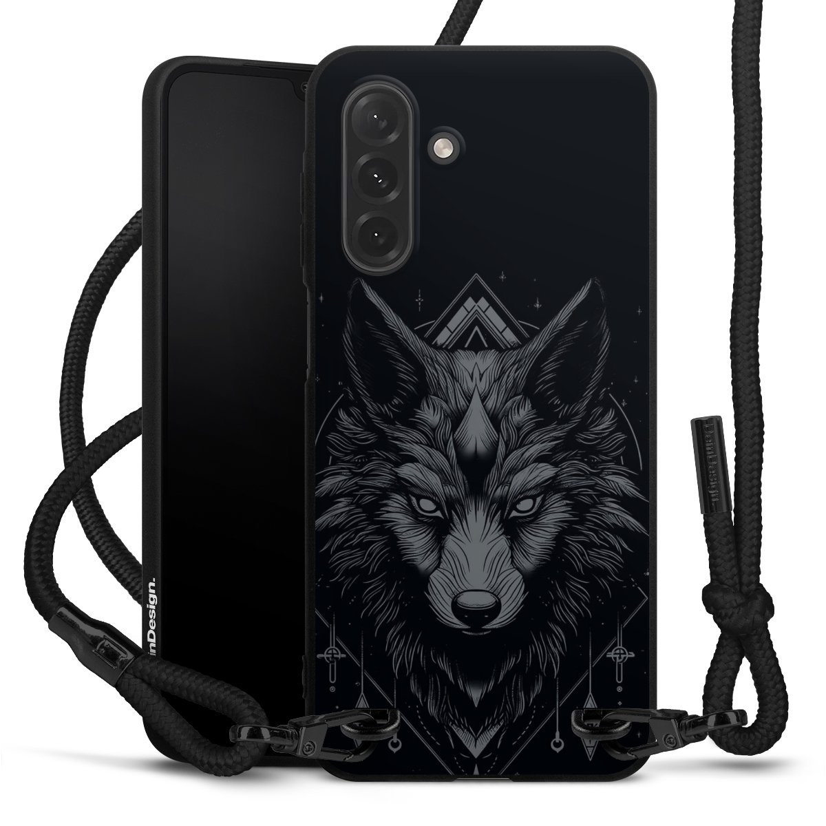 Pure Black: Phone case, fabric strap and metal details in stylish matt black.