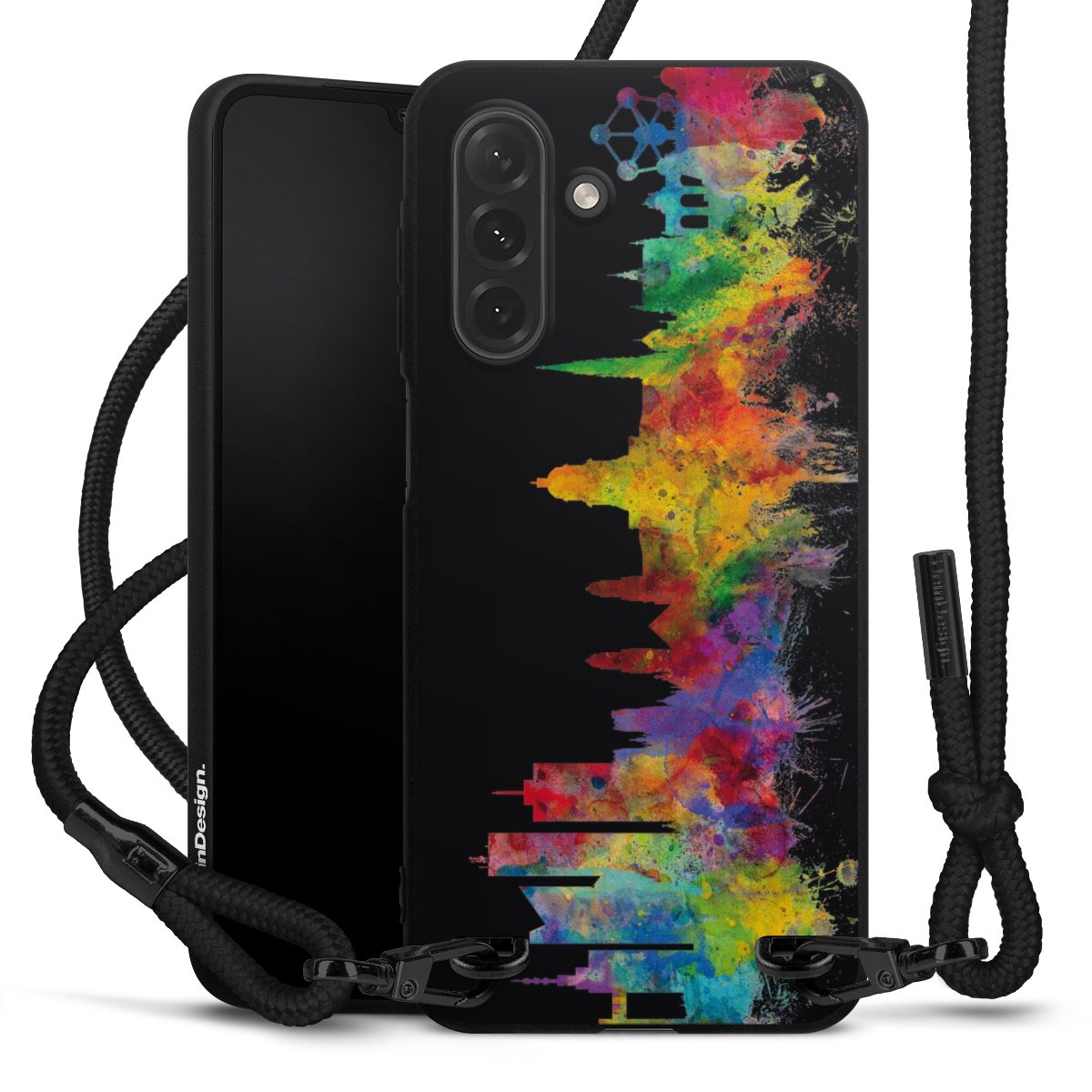 We use the solid direct print process for this phone case, which is why the print area only covers the back and the edge remains unprinted. The case to wear around your neck can be ordered unprinted, fully printed, or partially printed. For your design, either choose one of our exclusive shop motifs or get creative and create your own design, for example with photos and overlays. Design your own personal trend accessory and make an individual statement on the streets!