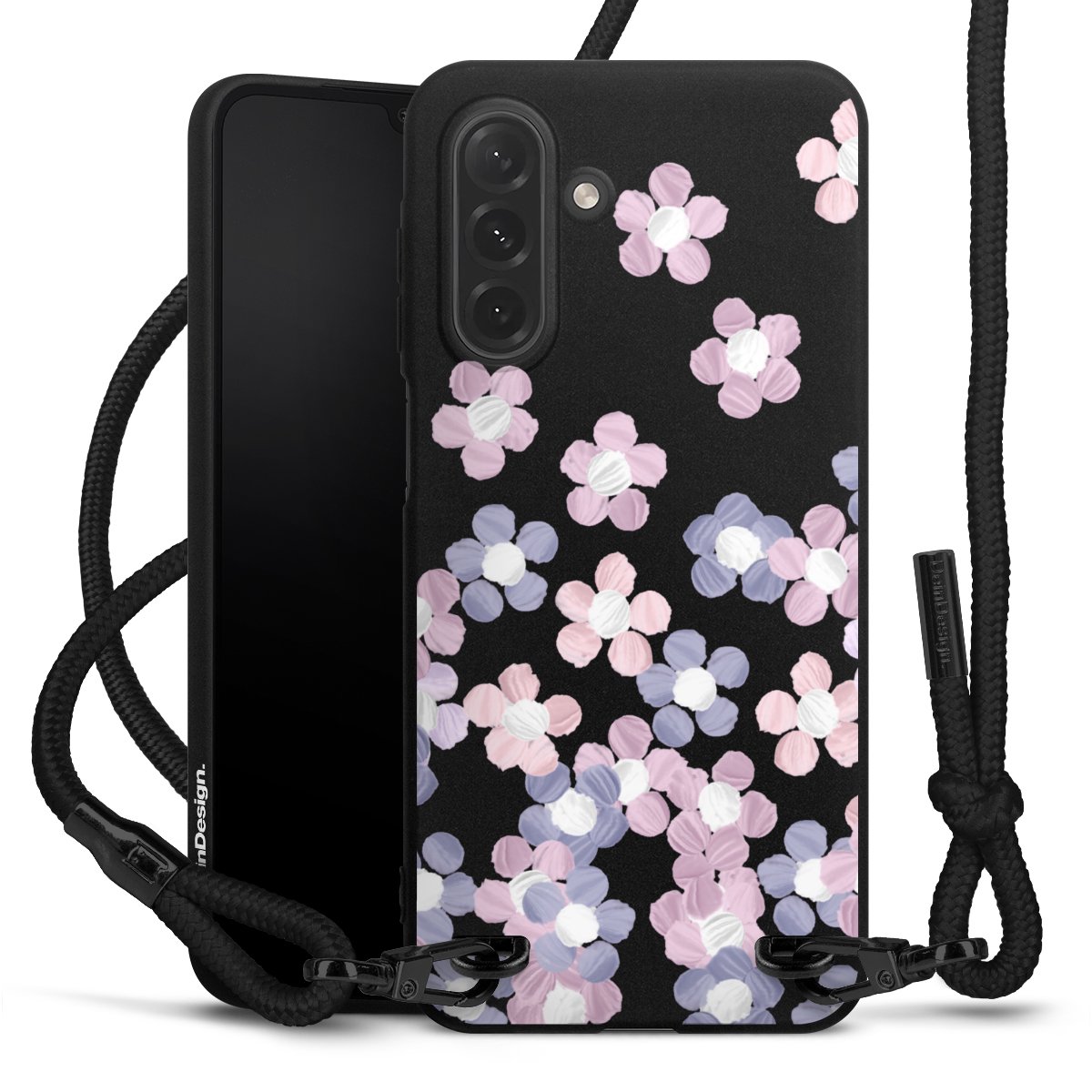 The matt black silicone case is made of flexible TPU (thermoplastic polyurethane) and offers robust protection. The durable, unbreakable material makes the cover flexible and dimensionally stable at the same time. The matte surface makes your design stand out more and is less susceptible to fingerprints and dirt. The stylish trend accessory fits comfortably in the hand and is perfectly complemented by the fabric (polyester) mobile phone strap. The braided fabric strap is approx. 1.70 metres long with a diameter of approx. 0.5 cm. Due to the special knotting technique, the length of the strap can be adjusted by simply pulling it, so that you can adapt it individually to your wishes. The practical case to wear around your neck is available with the fabric strap in black. As a little icing on the cake, we have provided the strap with a chic metal fastener in matt black. The strap is securely fastened to the case with loops made of high-quality genuine leather and press studs. The ends of the fabric strap are covered with metallic end caps and thus protected from fraying.