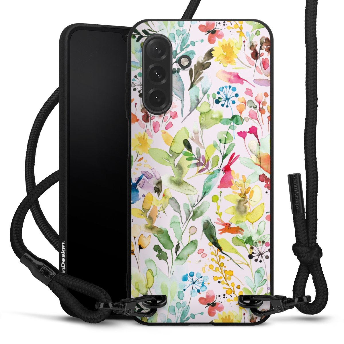 Pure Black: Phone case, fabric strap and metal details in stylish matt black.