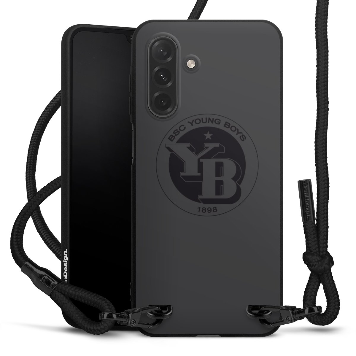 Pure Black: Phone case, fabric strap and metal details in stylish matt black.