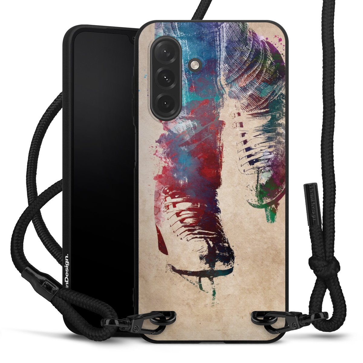 We use the solid direct print process for this phone case, which is why the print area only covers the back and the edge remains unprinted. The case to wear around your neck can be ordered unprinted, fully printed, or partially printed. For your design, either choose one of our exclusive shop motifs or get creative and create your own design, for example with photos and overlays. Design your own personal trend accessory and make an individual statement on the streets!