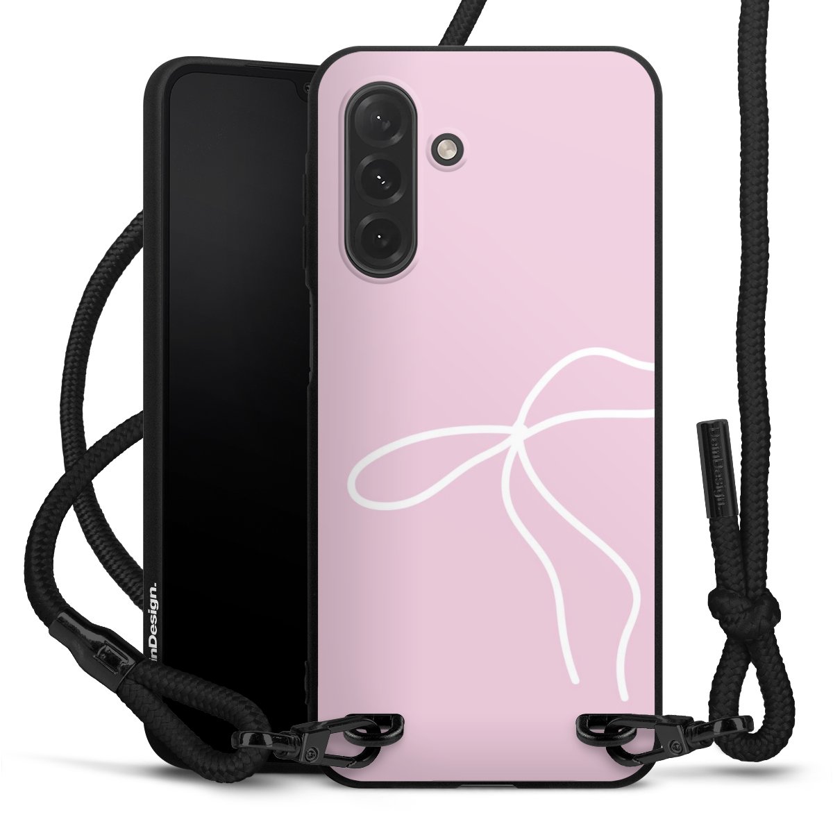 The matt black silicone case is made of flexible TPU (thermoplastic polyurethane) and offers robust protection. The durable, unbreakable material makes the cover flexible and dimensionally stable at the same time. The matte surface makes your design stand out more and is less susceptible to fingerprints and dirt. The stylish trend accessory fits comfortably in the hand and is perfectly complemented by the fabric (polyester) mobile phone strap. The braided fabric strap is approx. 1.70 metres long with a diameter of approx. 0.5 cm. Due to the special knotting technique, the length of the strap can be adjusted by simply pulling it, so that you can adapt it individually to your wishes. The practical case to wear around your neck is available with the fabric strap in black. As a little icing on the cake, we have provided the strap with a chic metal fastener in matt black. The strap is securely fastened to the case with loops made of high-quality genuine leather and press studs. The ends of the fabric strap are covered with metallic end caps and thus protected from fraying.