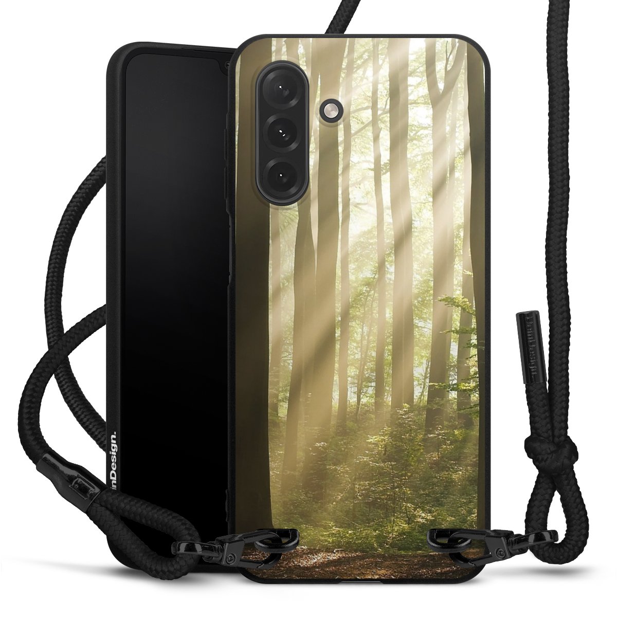 The matt black silicone case is made of flexible TPU (thermoplastic polyurethane) and offers robust protection. The durable, unbreakable material makes the cover flexible and dimensionally stable at the same time. The matte surface makes your design stand out more and is less susceptible to fingerprints and dirt. The stylish trend accessory fits comfortably in the hand and is perfectly complemented by the fabric (polyester) mobile phone strap. The braided fabric strap is approx. 1.70 metres long with a diameter of approx. 0.5 cm. Due to the special knotting technique, the length of the strap can be adjusted by simply pulling it, so that you can adapt it individually to your wishes. The practical case to wear around your neck is available with the fabric strap in black. As a little icing on the cake, we have provided the strap with a chic metal fastener in matt black. The strap is securely fastened to the case with loops made of high-quality genuine leather and press studs. The ends of the fabric strap are covered with metallic end caps and thus protected from fraying.