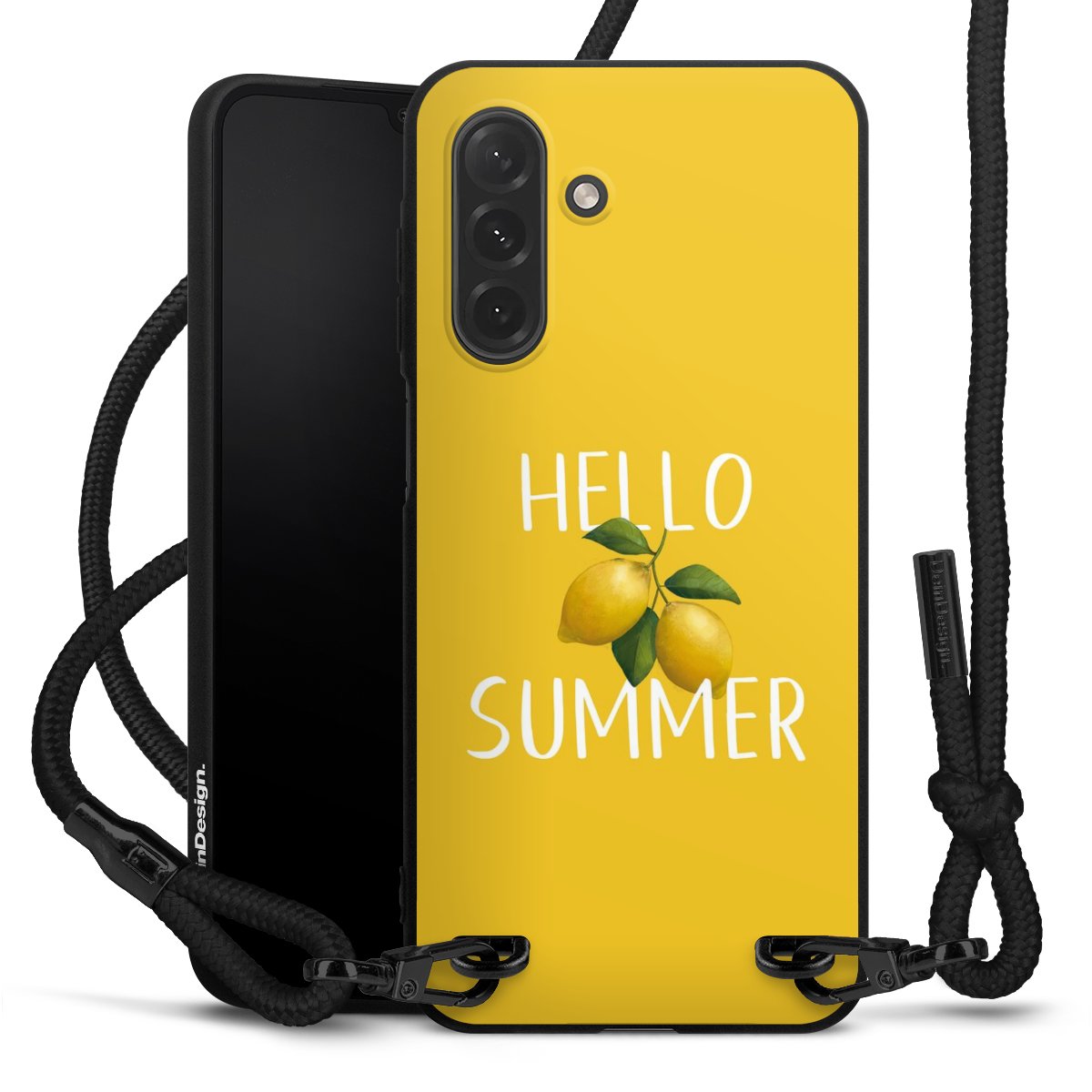 The matt black silicone case is made of flexible TPU (thermoplastic polyurethane) and offers robust protection. The durable, unbreakable material makes the cover flexible and dimensionally stable at the same time. The matte surface makes your design stand out more and is less susceptible to fingerprints and dirt. The stylish trend accessory fits comfortably in the hand and is perfectly complemented by the fabric (polyester) mobile phone strap. The braided fabric strap is approx. 1.70 metres long with a diameter of approx. 0.5 cm. Due to the special knotting technique, the length of the strap can be adjusted by simply pulling it, so that you can adapt it individually to your wishes. The practical case to wear around your neck is available with the fabric strap in black. As a little icing on the cake, we have provided the strap with a chic metal fastener in matt black. The strap is securely fastened to the case with loops made of high-quality genuine leather and press studs. The ends of the fabric strap are covered with metallic end caps and thus protected from fraying.