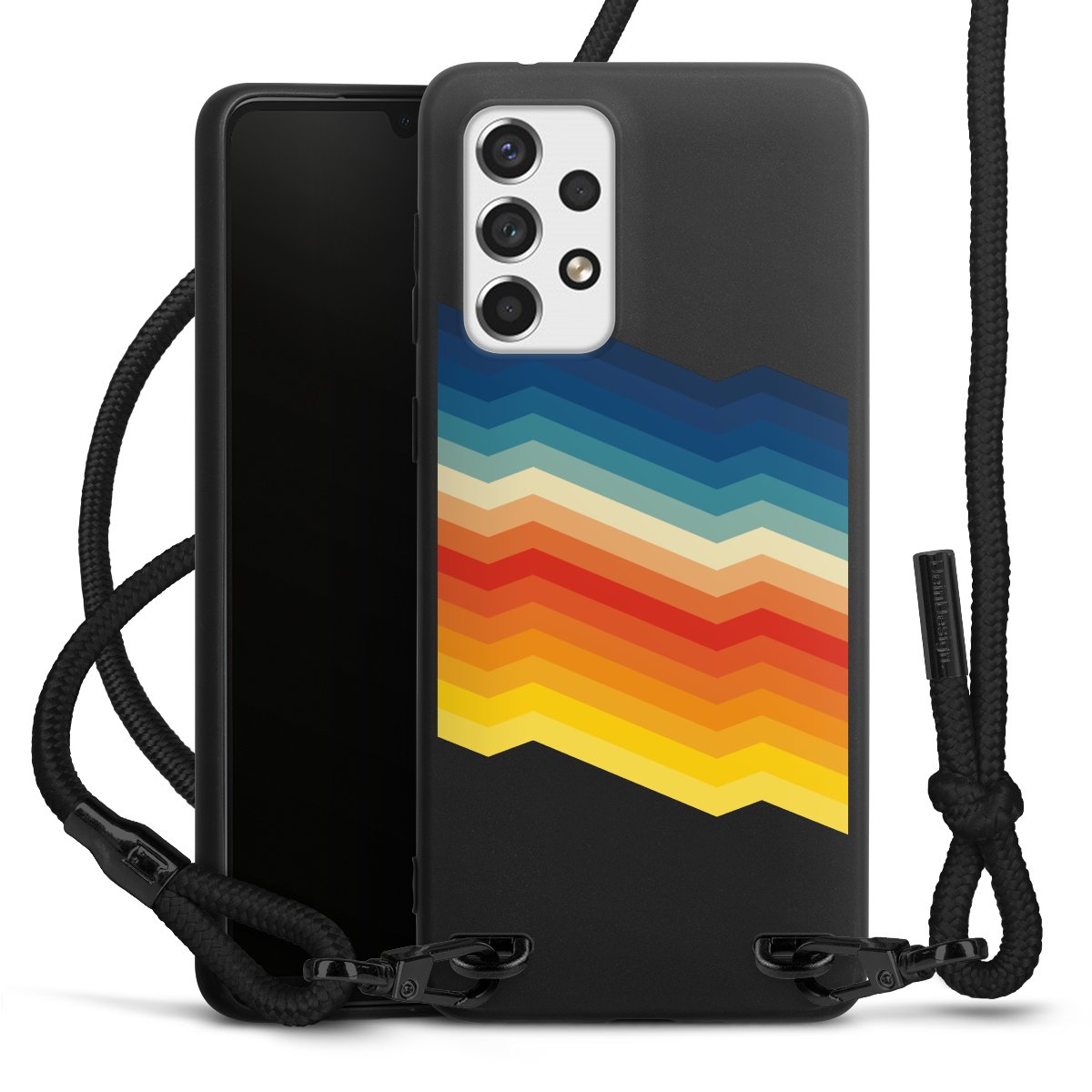 We use the solid direct print process for this phone case, which is why the print area only covers the back and the edge remains unprinted. The case to wear around your neck can be ordered unprinted, fully printed, or partially printed. For your design, either choose one of our exclusive shop motifs or get creative and create your own design, for example with photos and overlays. Design your own personal trend accessory and make an individual statement on the streets!