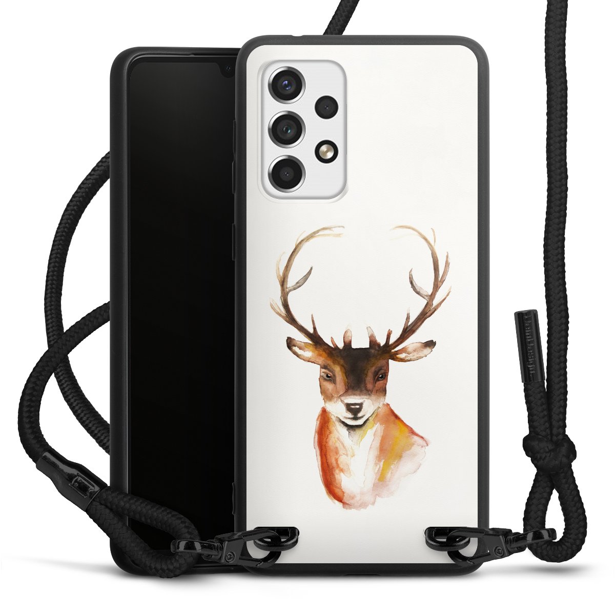 The matt black silicone case is made of flexible TPU (thermoplastic polyurethane) and offers robust protection. The durable, unbreakable material makes the cover flexible and dimensionally stable at the same time. The matte surface makes your design stand out more and is less susceptible to fingerprints and dirt. The stylish trend accessory fits comfortably in the hand and is perfectly complemented by the fabric (polyester) mobile phone strap. The braided fabric strap is approx. 1.70 metres long with a diameter of approx. 0.5 cm. Due to the special knotting technique, the length of the strap can be adjusted by simply pulling it, so that you can adapt it individually to your wishes. The practical case to wear around your neck is available with the fabric strap in black. As a little icing on the cake, we have provided the strap with a chic metal fastener in matt black. The strap is securely fastened to the case with loops made of high-quality genuine leather and press studs. The ends of the fabric strap are covered with metallic end caps and thus protected from fraying.