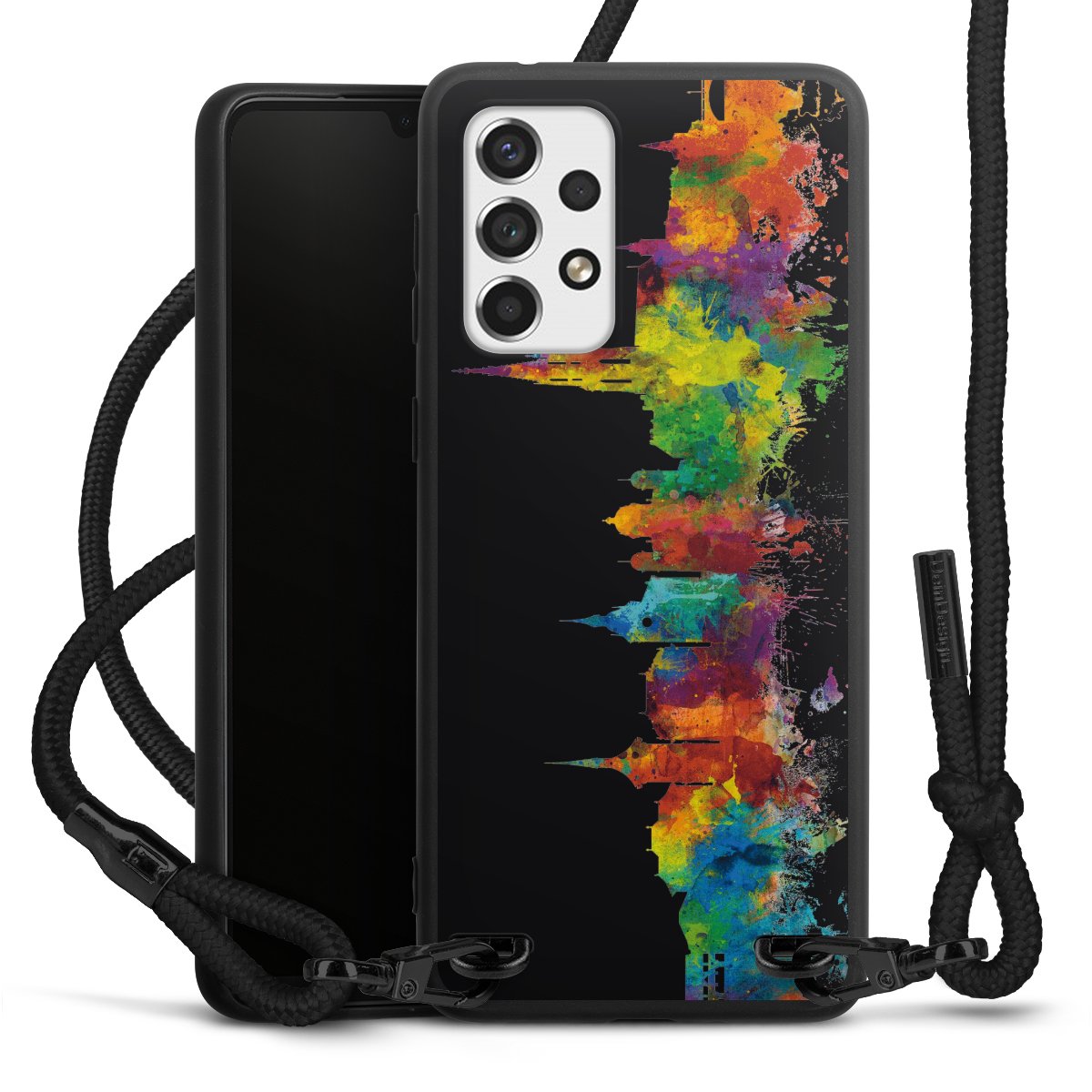 We use the solid direct print process for this phone case, which is why the print area only covers the back and the edge remains unprinted. The case to wear around your neck can be ordered unprinted, fully printed, or partially printed. For your design, either choose one of our exclusive shop motifs or get creative and create your own design, for example with photos and overlays. Design your own personal trend accessory and make an individual statement on the streets!