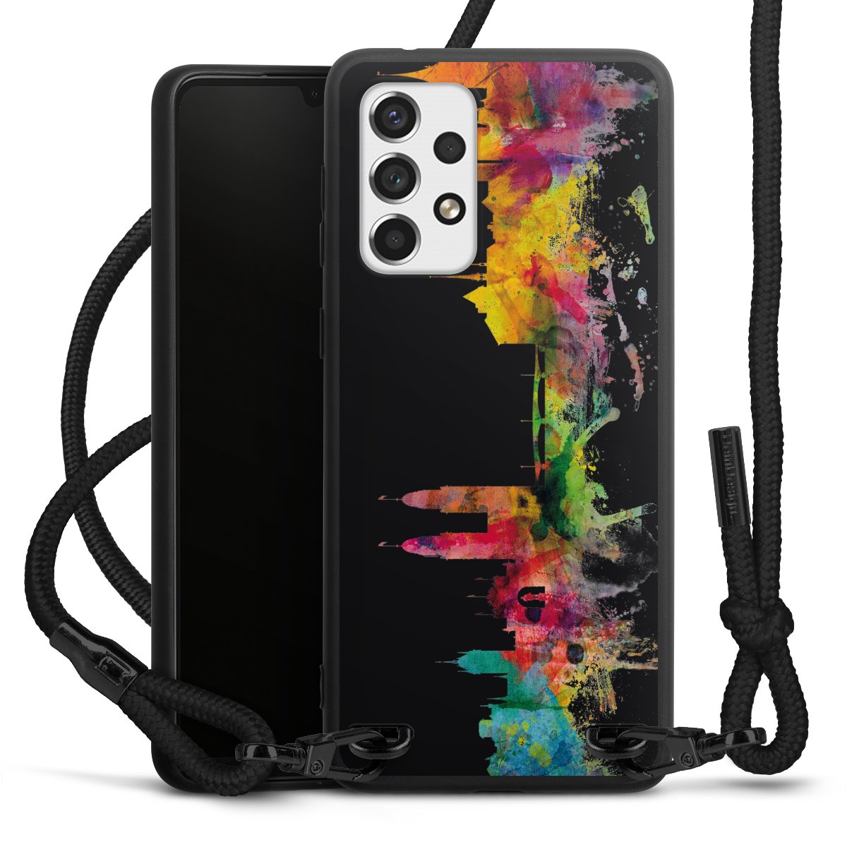 We use the solid direct print process for this phone case, which is why the print area only covers the back and the edge remains unprinted. The case to wear around your neck can be ordered unprinted, fully printed, or partially printed. For your design, either choose one of our exclusive shop motifs or get creative and create your own design, for example with photos and overlays. Design your own personal trend accessory and make an individual statement on the streets!