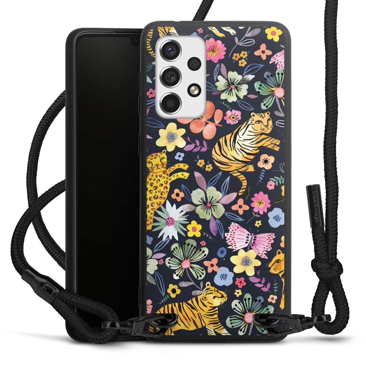 We use the solid direct print process for this phone case, which is why the print area only covers the back and the edge remains unprinted. The case to wear around your neck can be ordered unprinted, fully printed, or partially printed. For your design, either choose one of our exclusive shop motifs or get creative and create your own design, for example with photos and overlays. Design your own personal trend accessory and make an individual statement on the streets!