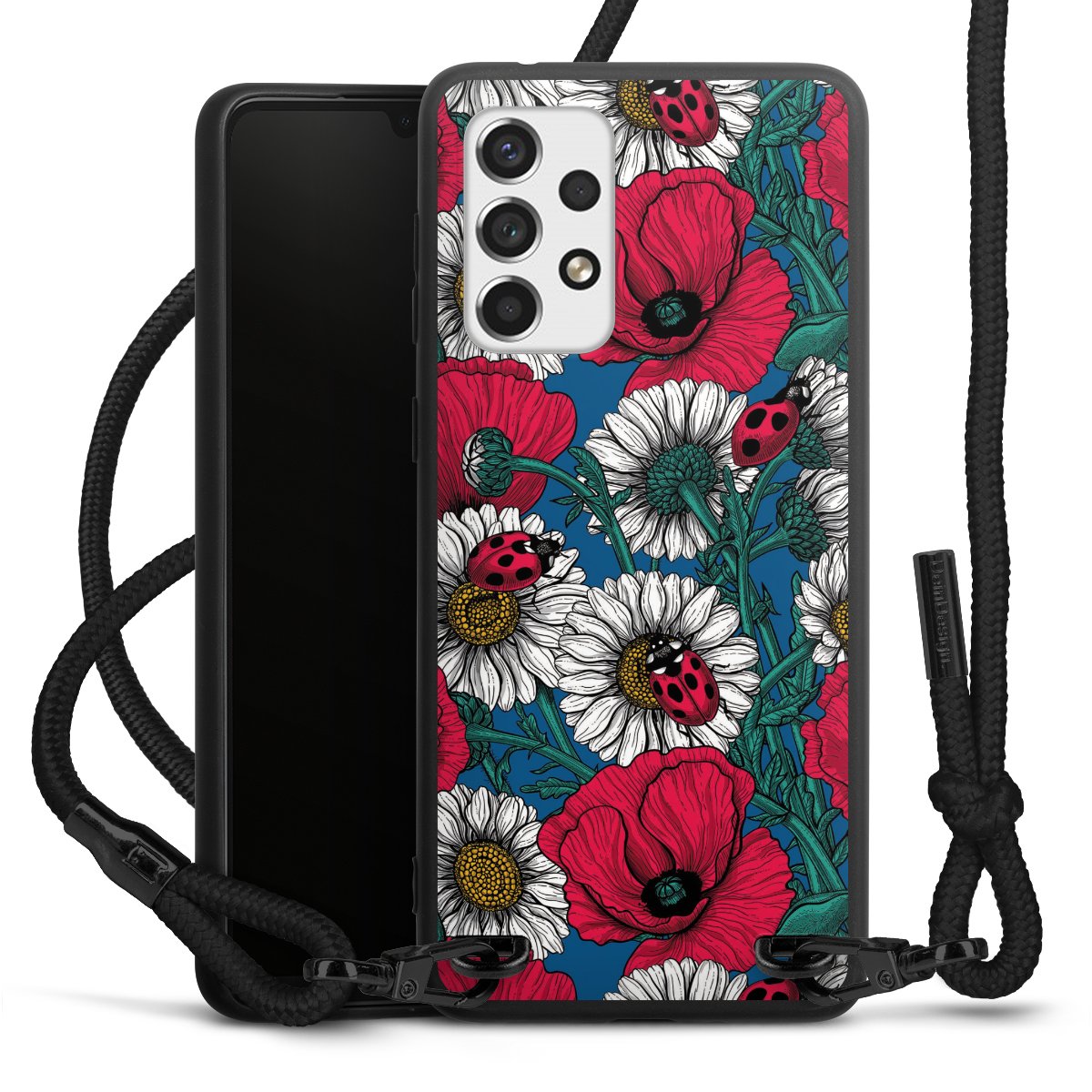 The matt black silicone case is made of flexible TPU (thermoplastic polyurethane) and offers robust protection. The durable, unbreakable material makes the cover flexible and dimensionally stable at the same time. The matte surface makes your design stand out more and is less susceptible to fingerprints and dirt. The stylish trend accessory fits comfortably in the hand and is perfectly complemented by the fabric (polyester) mobile phone strap. The braided fabric strap is approx. 1.70 metres long with a diameter of approx. 0.5 cm. Due to the special knotting technique, the length of the strap can be adjusted by simply pulling it, so that you can adapt it individually to your wishes. The practical case to wear around your neck is available with the fabric strap in black. As a little icing on the cake, we have provided the strap with a chic metal fastener in matt black. The strap is securely fastened to the case with loops made of high-quality genuine leather and press studs. The ends of the fabric strap are covered with metallic end caps and thus protected from fraying.