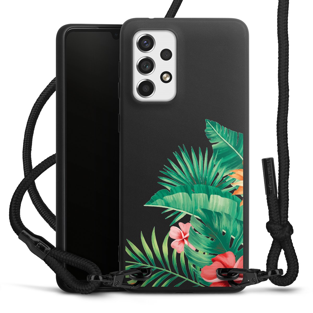 We use the solid direct print process for this phone case, which is why the print area only covers the back and the edge remains unprinted. The case to wear around your neck can be ordered unprinted, fully printed, or partially printed. For your design, either choose one of our exclusive shop motifs or get creative and create your own design, for example with photos and overlays. Design your own personal trend accessory and make an individual statement on the streets!