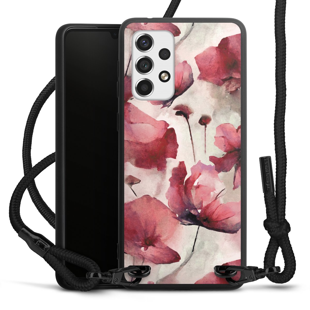 We use the solid direct print process for this phone case, which is why the print area only covers the back and the edge remains unprinted. The case to wear around your neck can be ordered unprinted, fully printed, or partially printed. For your design, either choose one of our exclusive shop motifs or get creative and create your own design, for example with photos and overlays. Design your own personal trend accessory and make an individual statement on the streets!