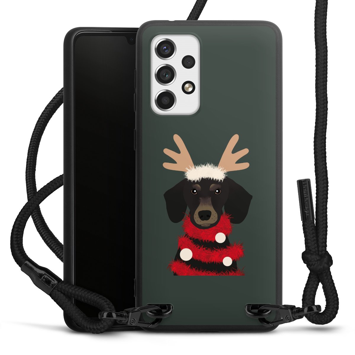 The matt black silicone case is made of flexible TPU (thermoplastic polyurethane) and offers robust protection. The durable, unbreakable material makes the cover flexible and dimensionally stable at the same time. The matte surface makes your design stand out more and is less susceptible to fingerprints and dirt. The stylish trend accessory fits comfortably in the hand and is perfectly complemented by the fabric (polyester) mobile phone strap. The braided fabric strap is approx. 1.70 metres long with a diameter of approx. 0.5 cm. Due to the special knotting technique, the length of the strap can be adjusted by simply pulling it, so that you can adapt it individually to your wishes. The practical case to wear around your neck is available with the fabric strap in black. As a little icing on the cake, we have provided the strap with a chic metal fastener in matt black. The strap is securely fastened to the case with loops made of high-quality genuine leather and press studs. The ends of the fabric strap are covered with metallic end caps and thus protected from fraying.
