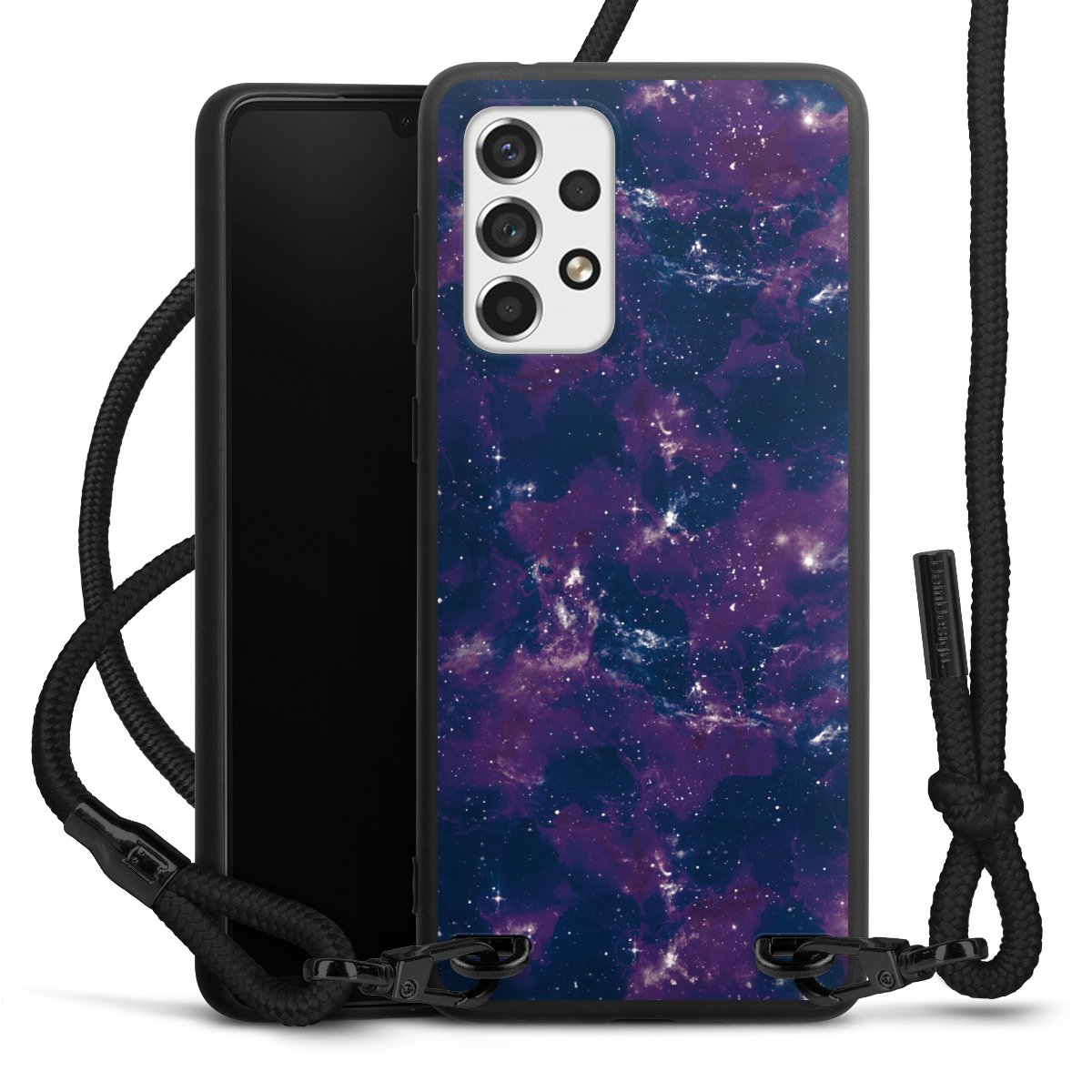 We use the solid direct print process for this phone case, which is why the print area only covers the back and the edge remains unprinted. The case to wear around your neck can be ordered unprinted, fully printed, or partially printed. For your design, either choose one of our exclusive shop motifs or get creative and create your own design, for example with photos and overlays. Design your own personal trend accessory and make an individual statement on the streets!