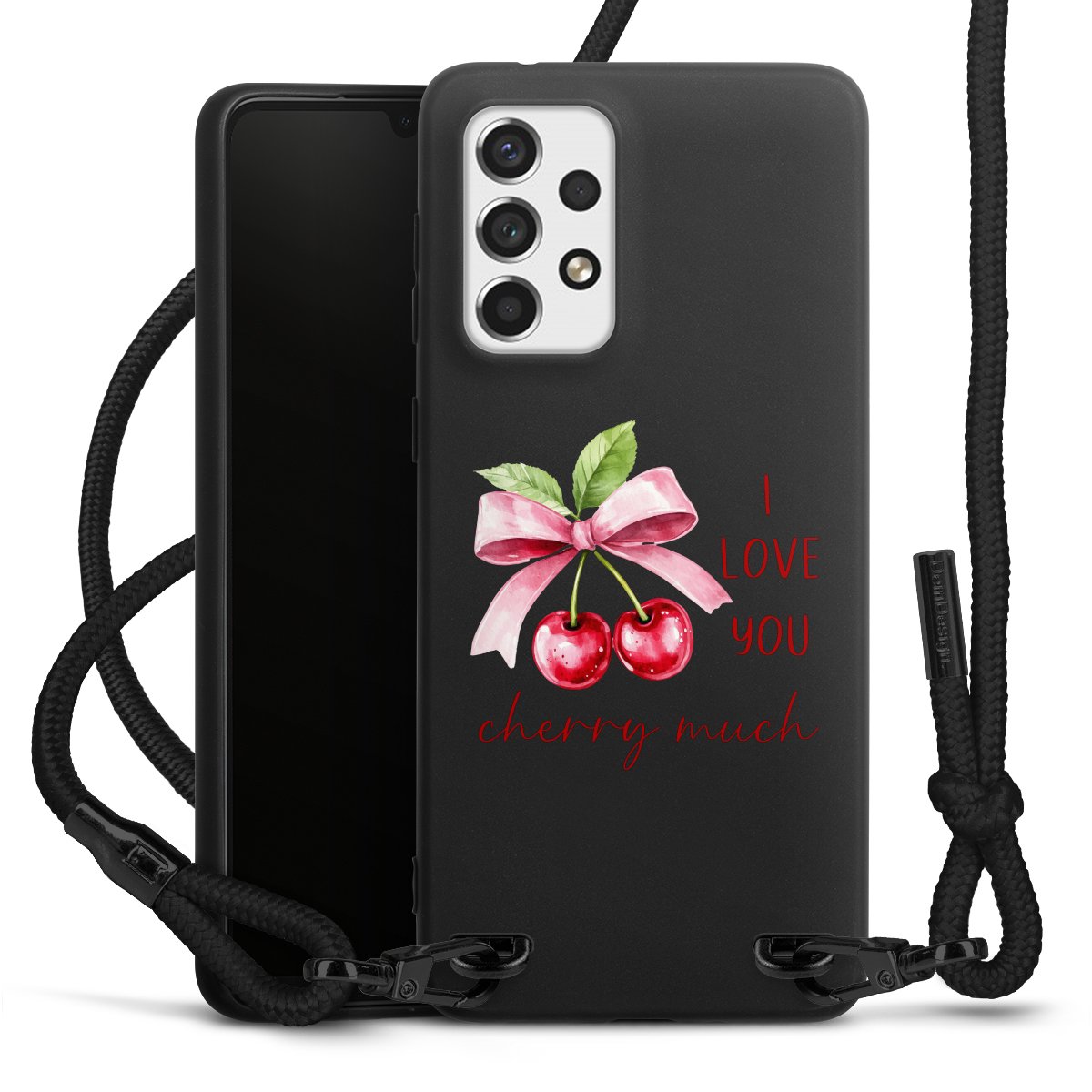 The matt black silicone case is made of flexible TPU (thermoplastic polyurethane) and offers robust protection. The durable, unbreakable material makes the cover flexible and dimensionally stable at the same time. The matte surface makes your design stand out more and is less susceptible to fingerprints and dirt. The stylish trend accessory fits comfortably in the hand and is perfectly complemented by the fabric (polyester) mobile phone strap. The braided fabric strap is approx. 1.70 metres long with a diameter of approx. 0.5 cm. Due to the special knotting technique, the length of the strap can be adjusted by simply pulling it, so that you can adapt it individually to your wishes. The practical case to wear around your neck is available with the fabric strap in black. As a little icing on the cake, we have provided the strap with a chic metal fastener in matt black. The strap is securely fastened to the case with loops made of high-quality genuine leather and press studs. The ends of the fabric strap are covered with metallic end caps and thus protected from fraying.