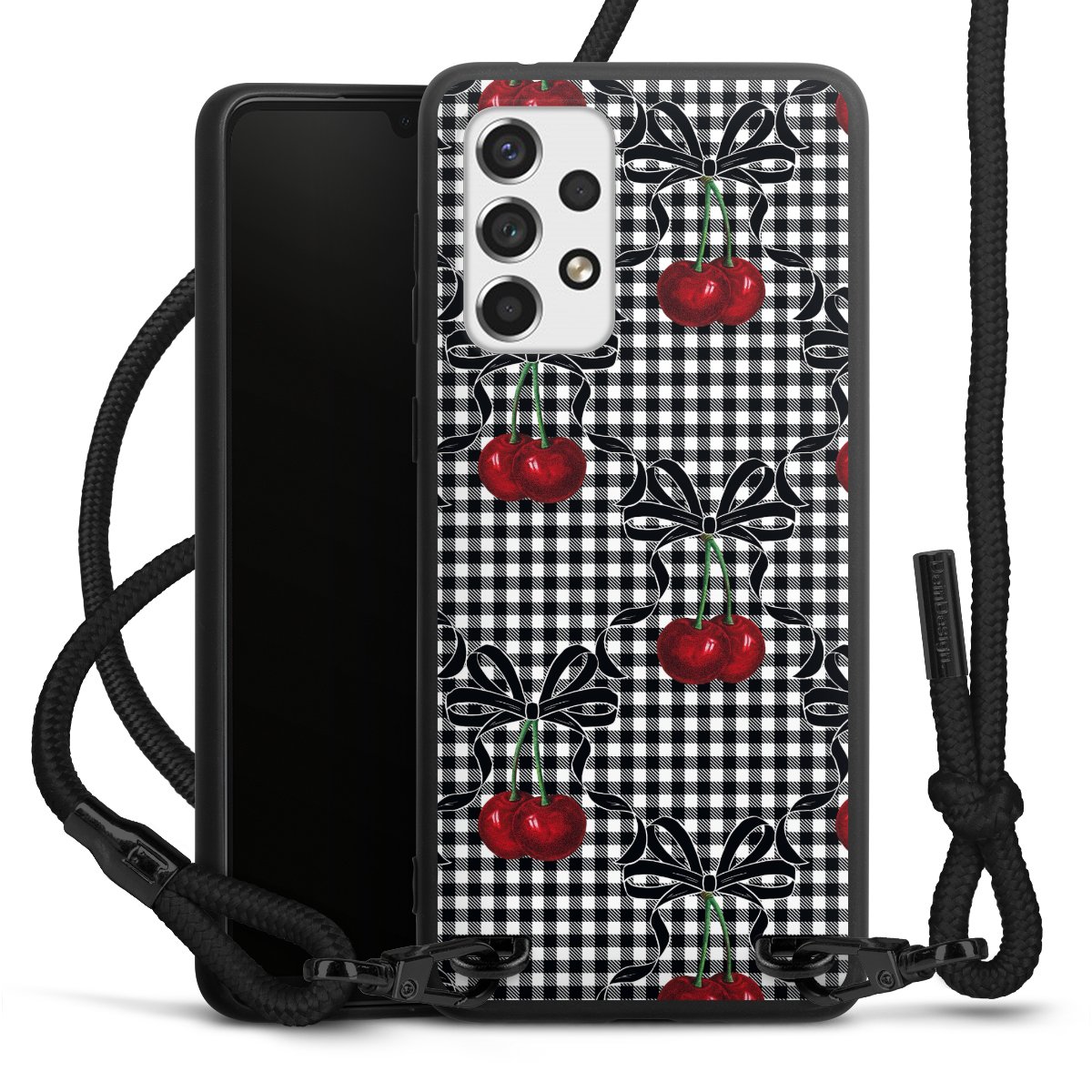 The matt black silicone case is made of flexible TPU (thermoplastic polyurethane) and offers robust protection. The durable, unbreakable material makes the cover flexible and dimensionally stable at the same time. The matte surface makes your design stand out more and is less susceptible to fingerprints and dirt. The stylish trend accessory fits comfortably in the hand and is perfectly complemented by the fabric (polyester) mobile phone strap. The braided fabric strap is approx. 1.70 metres long with a diameter of approx. 0.5 cm. Due to the special knotting technique, the length of the strap can be adjusted by simply pulling it, so that you can adapt it individually to your wishes. The practical case to wear around your neck is available with the fabric strap in black. As a little icing on the cake, we have provided the strap with a chic metal fastener in matt black. The strap is securely fastened to the case with loops made of high-quality genuine leather and press studs. The ends of the fabric strap are covered with metallic end caps and thus protected from fraying.