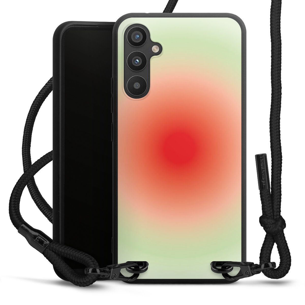 We use the solid direct print process for this phone case, which is why the print area only covers the back and the edge remains unprinted. The case to wear around your neck can be ordered unprinted, fully printed, or partially printed. For your design, either choose one of our exclusive shop motifs or get creative and create your own design, for example with photos and overlays. Design your own personal trend accessory and make an individual statement on the streets!