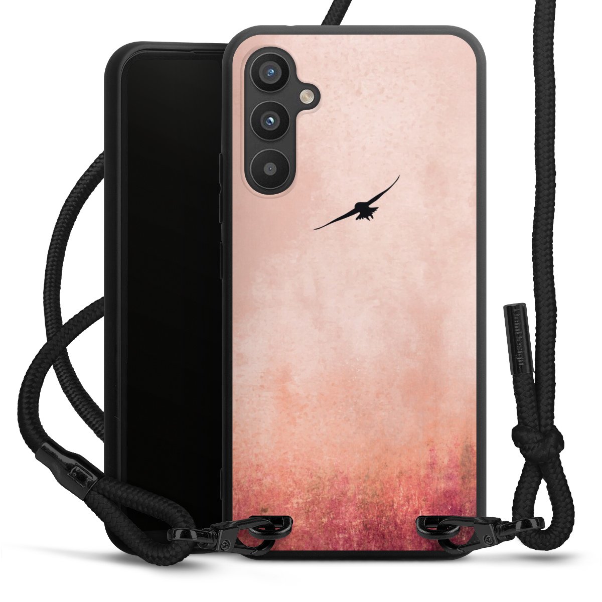We use the solid direct print process for this phone case, which is why the print area only covers the back and the edge remains unprinted. The case to wear around your neck can be ordered unprinted, fully printed, or partially printed. For your design, either choose one of our exclusive shop motifs or get creative and create your own design, for example with photos and overlays. Design your own personal trend accessory and make an individual statement on the streets!